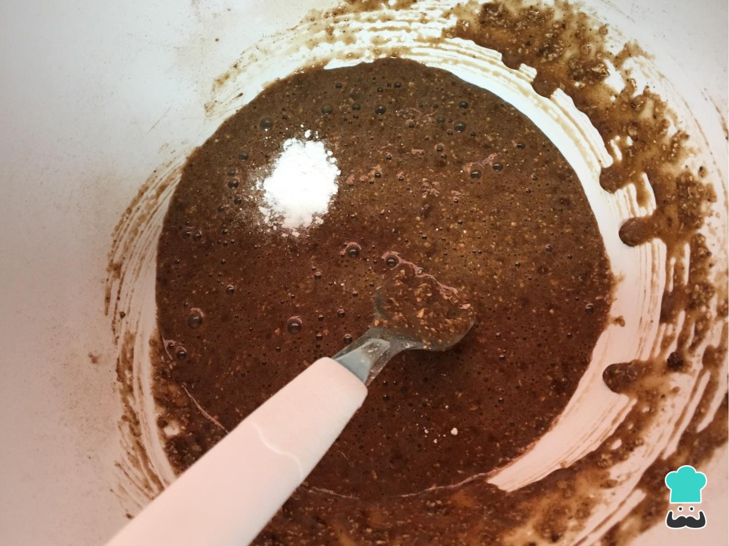 Prepare este bolinho delicioso começando por bater os ovos com o mel e o óleo de coco. Em seguida, junte o cacau, a farinha de amêndoas, o açúcar, a canela e o cravo e volte a misturar. Por último adicione o fermento.