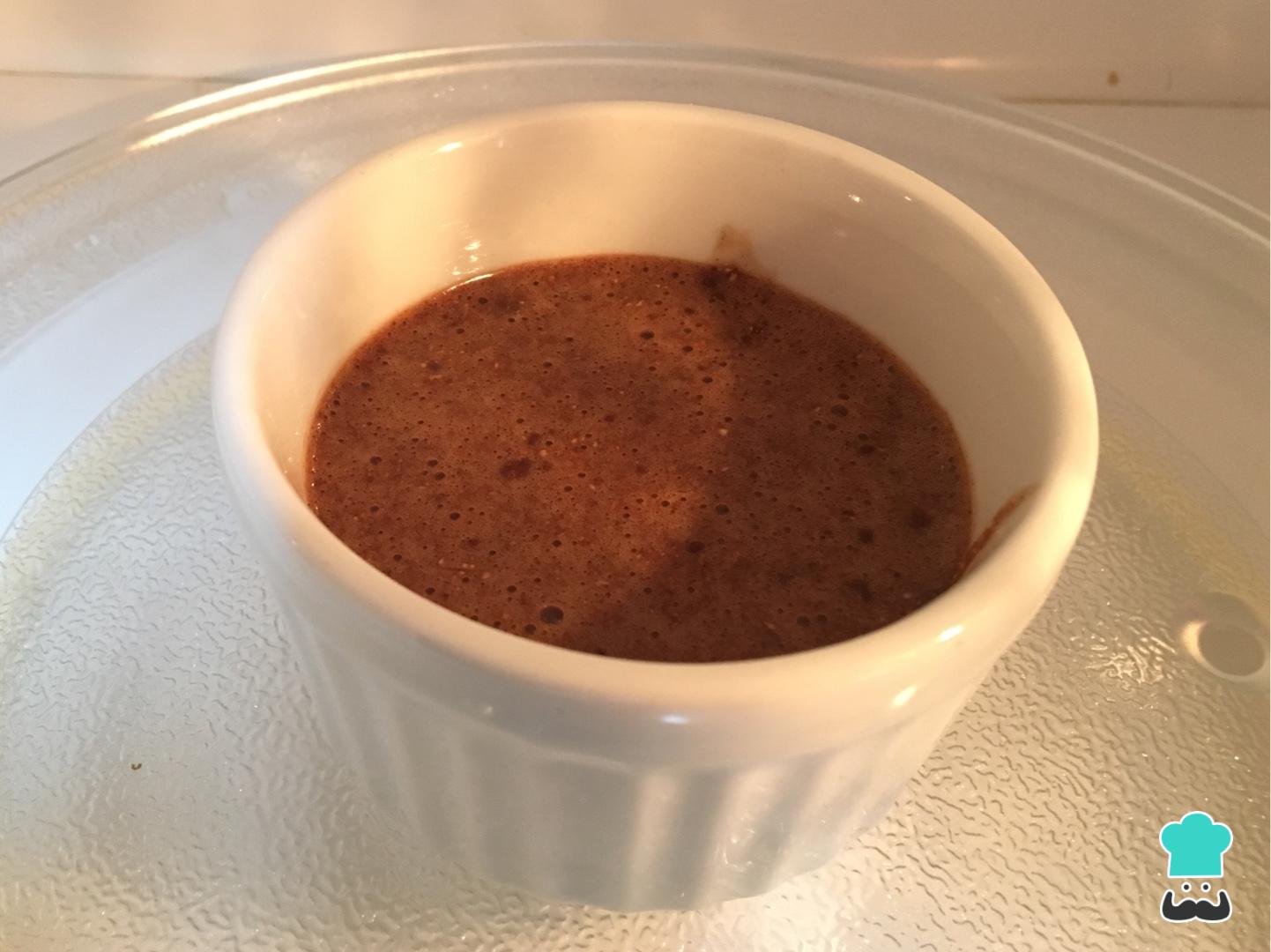 Dívida a massa em dois recipientes redondos pequenos e leve por 3 minutos no microondas, em potência máxima.