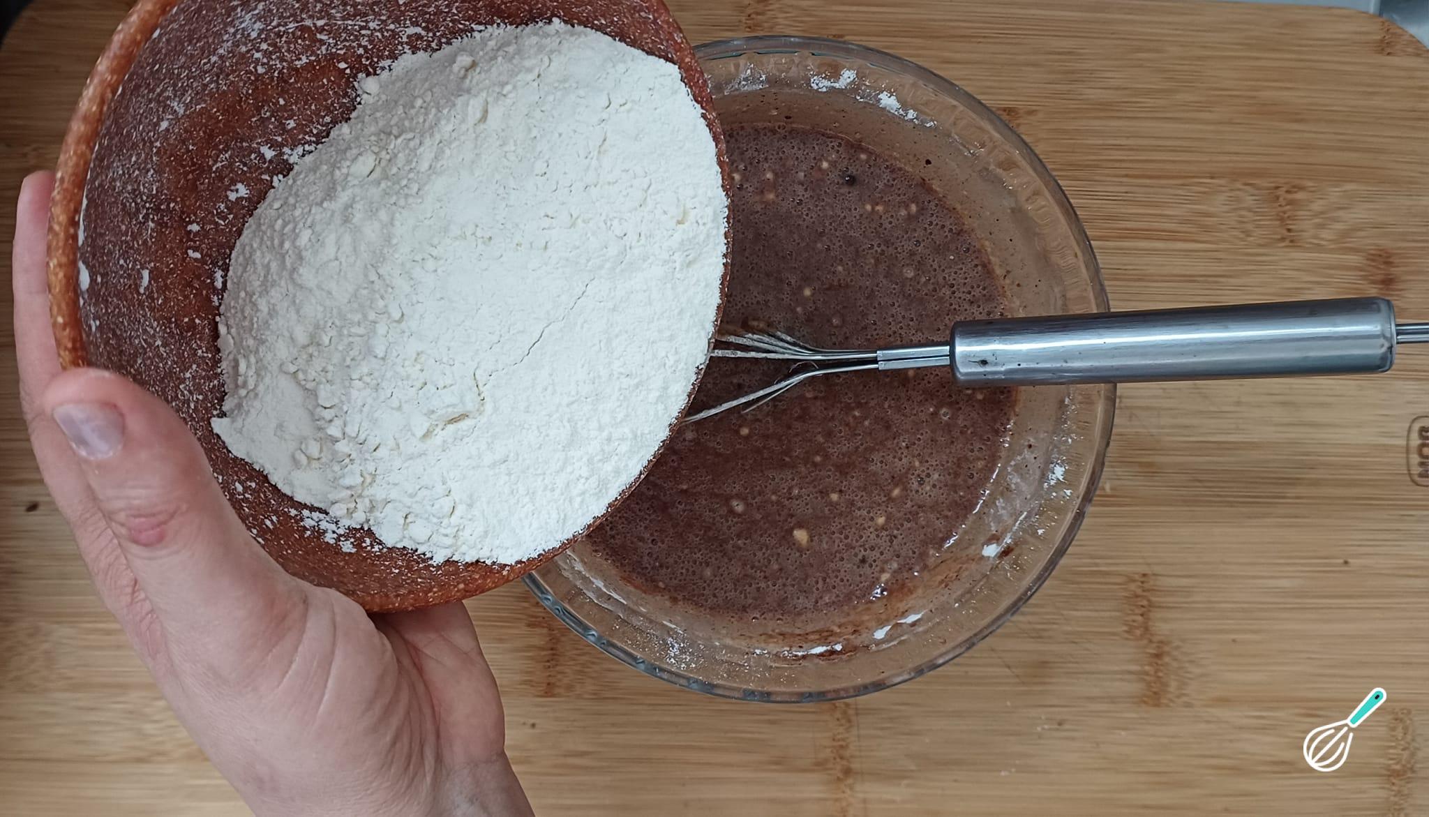 Por último, acrescente a farinha de trigo e misture tudo com um fouet até a massa ficar lisa e homogênea.