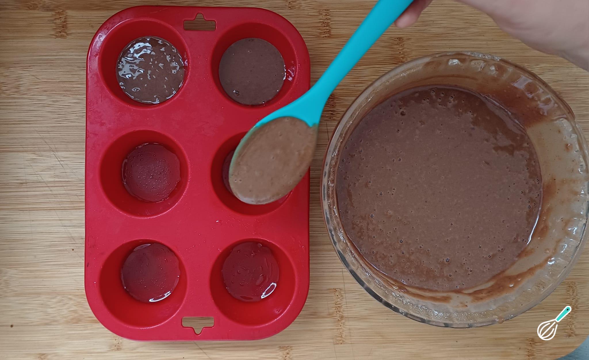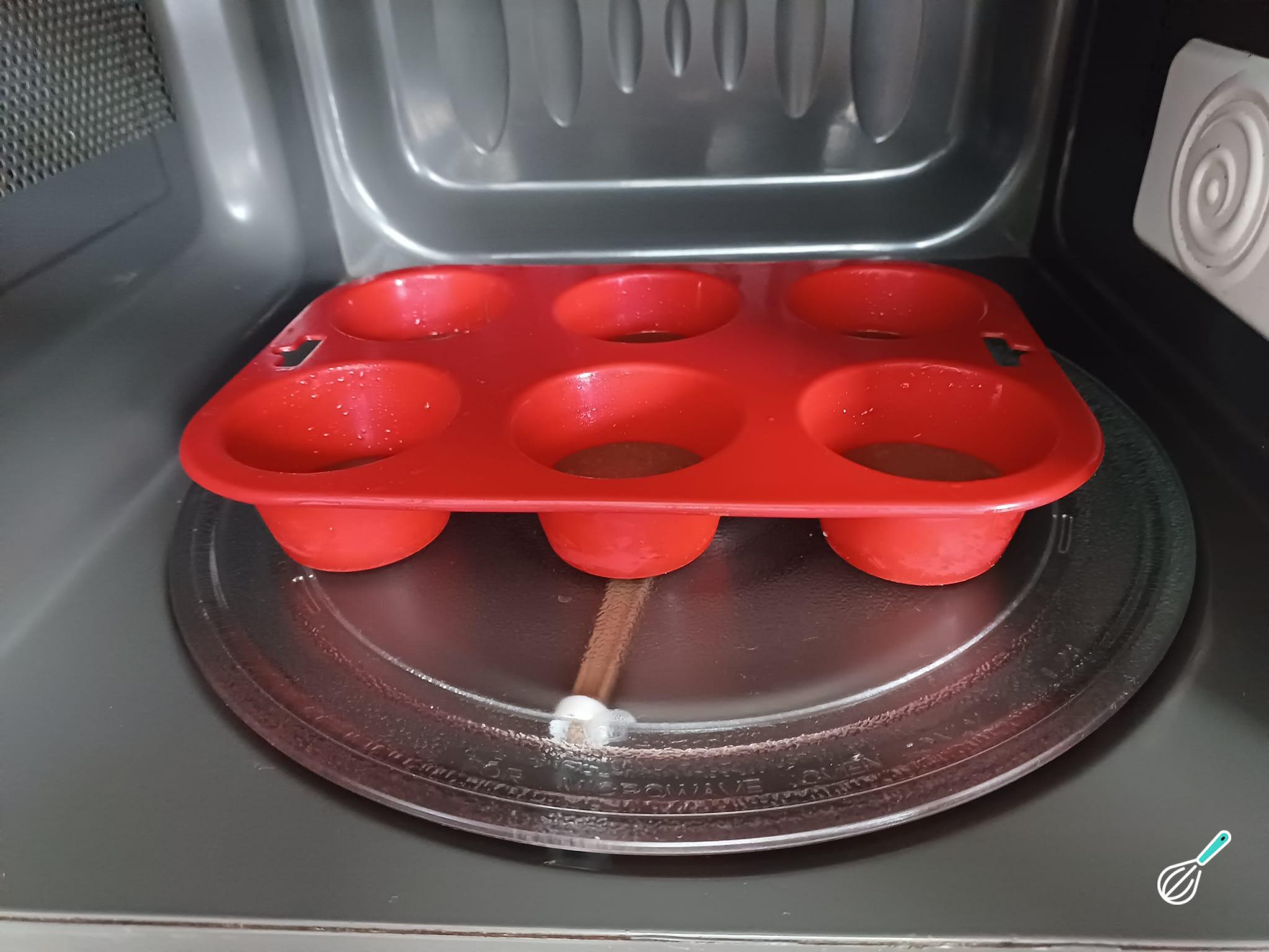Preencha até 1/4 de cada forminha de silicone (própria para micro-ondas), sem necessidade de untar.