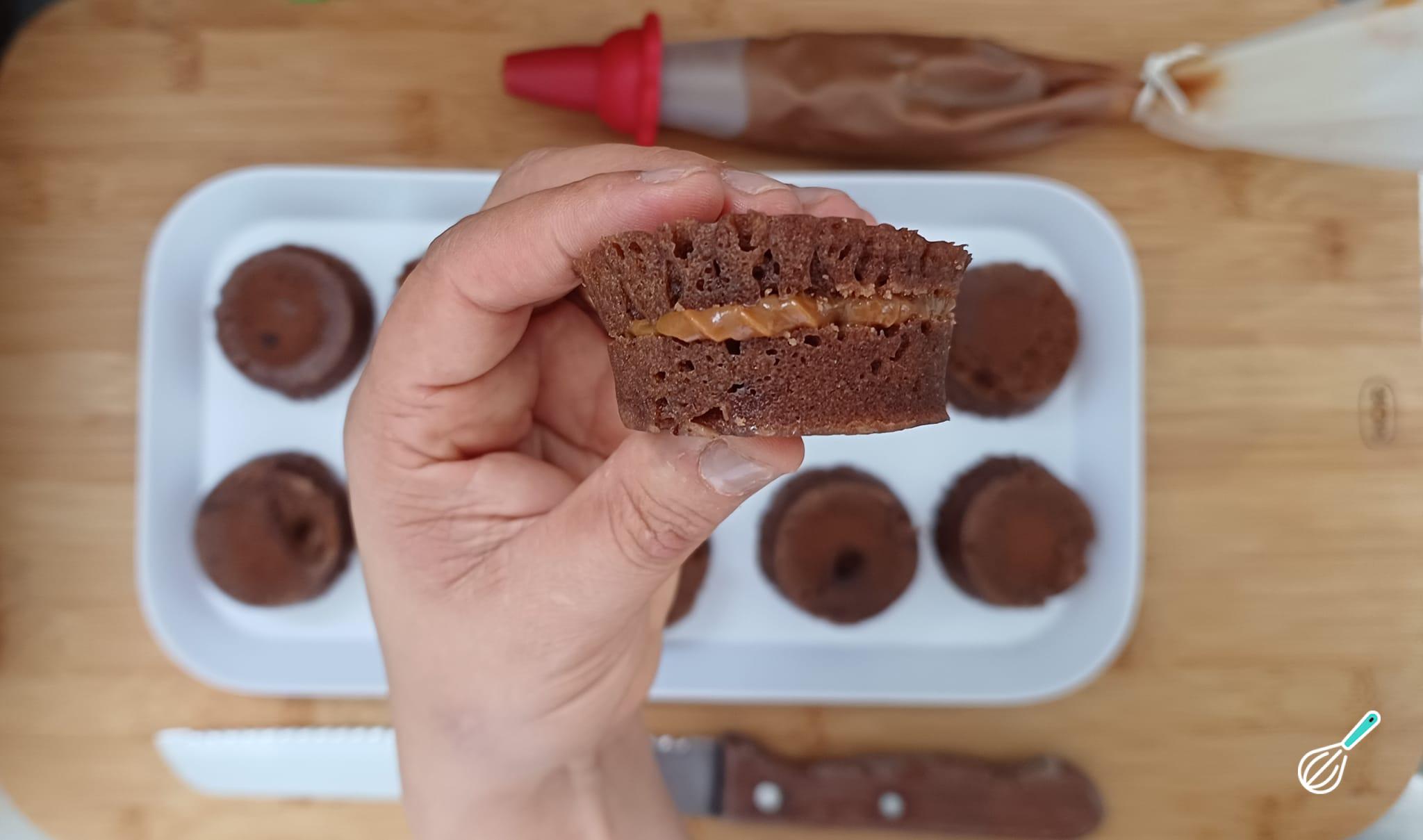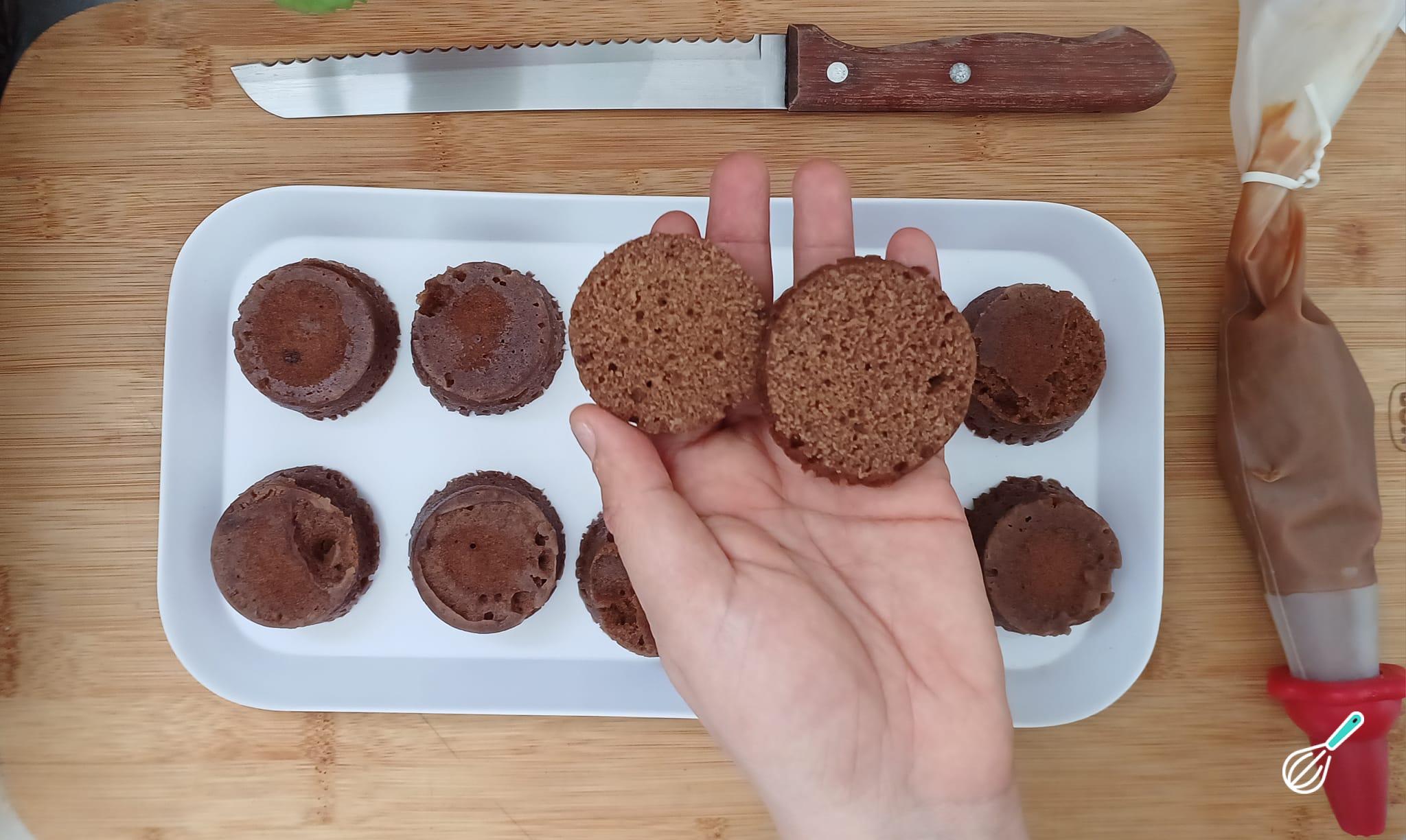 Retire-os das forminhas quando estiverem frios e corte-os ao meio.