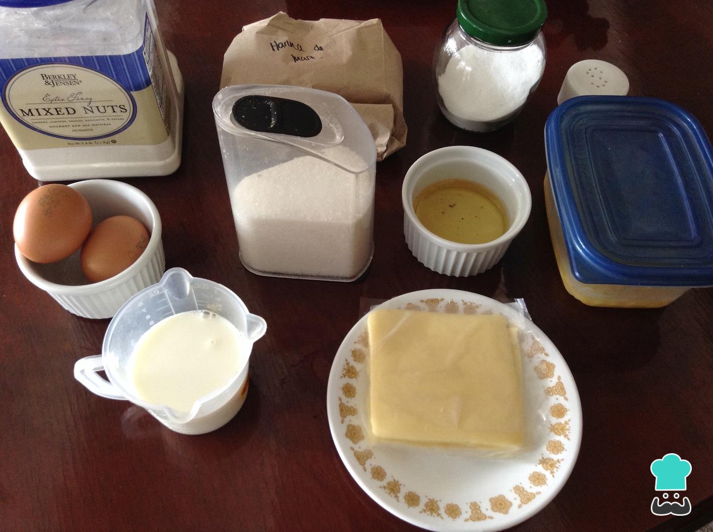 O primeiro passo para fazer esta receita de pão de milho é reunir os ingredientes.