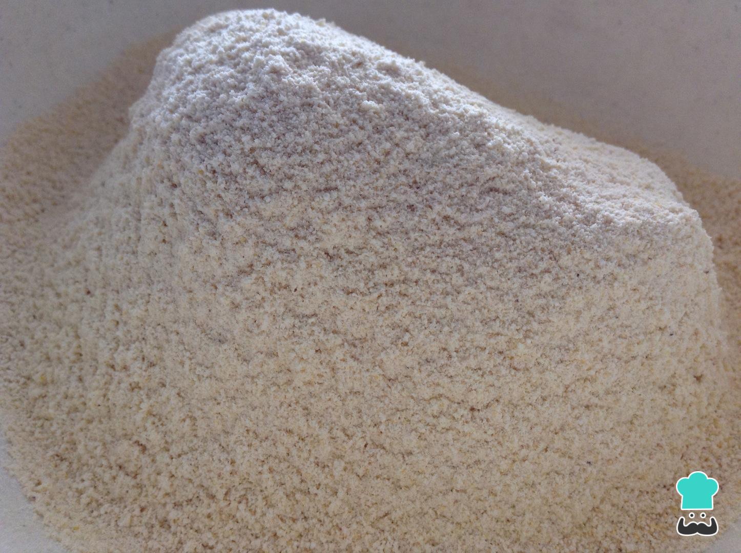 Peneire as duas farinhas para uma tigela, para que a massa fique mais fina.