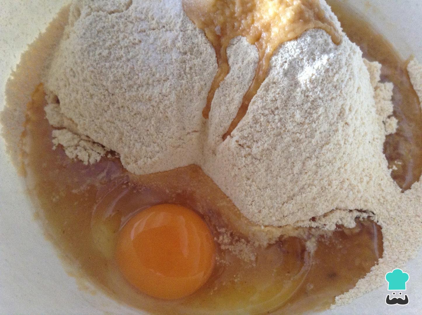 Adicione os ovos, a manteiga ou o óleo, o leite e o açúcar e misture tudo muito bem.
