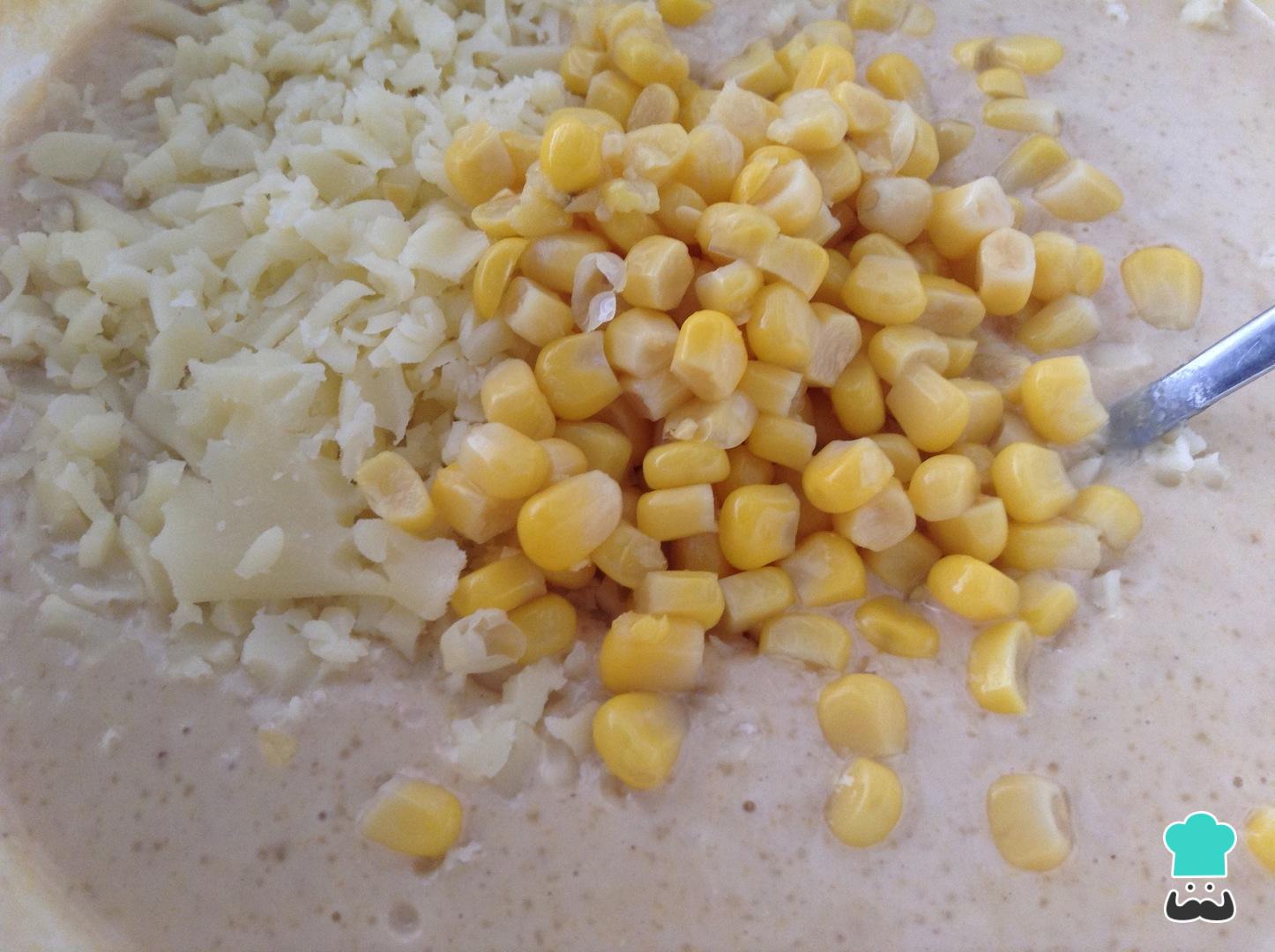 Termine com o milho verde, o queijo, o bicarbonato e o sal.