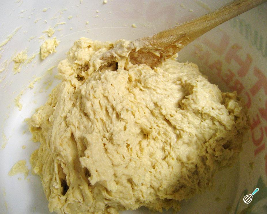 Dissolva a levedura de cerveja na água morna e adicione um pouco de farinha de trigo, o suficiente para formar mistura pastosa. Reserve num local ameno por 30 minutos ou até dobrar de tamanho.