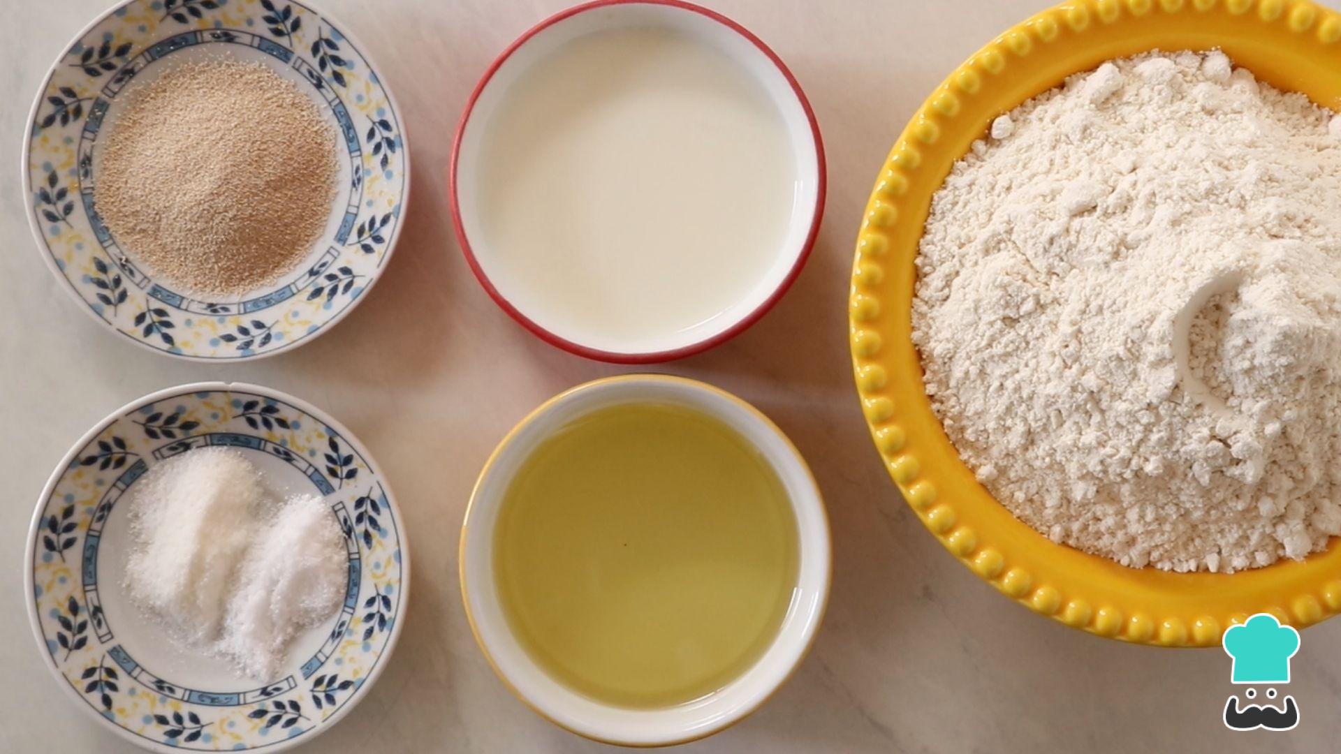 Vamos começar preparando a massa do nosso pão de mortadela, então separe os ingredientes.