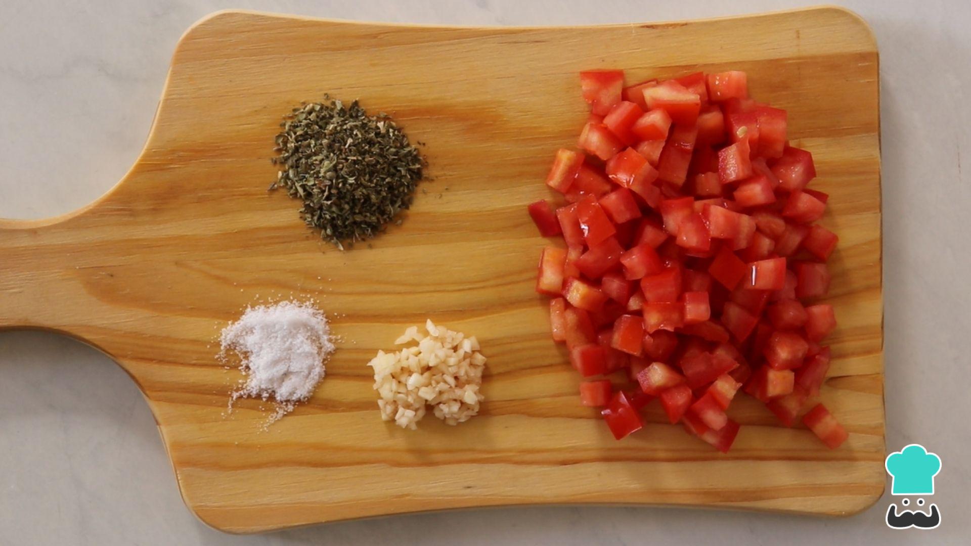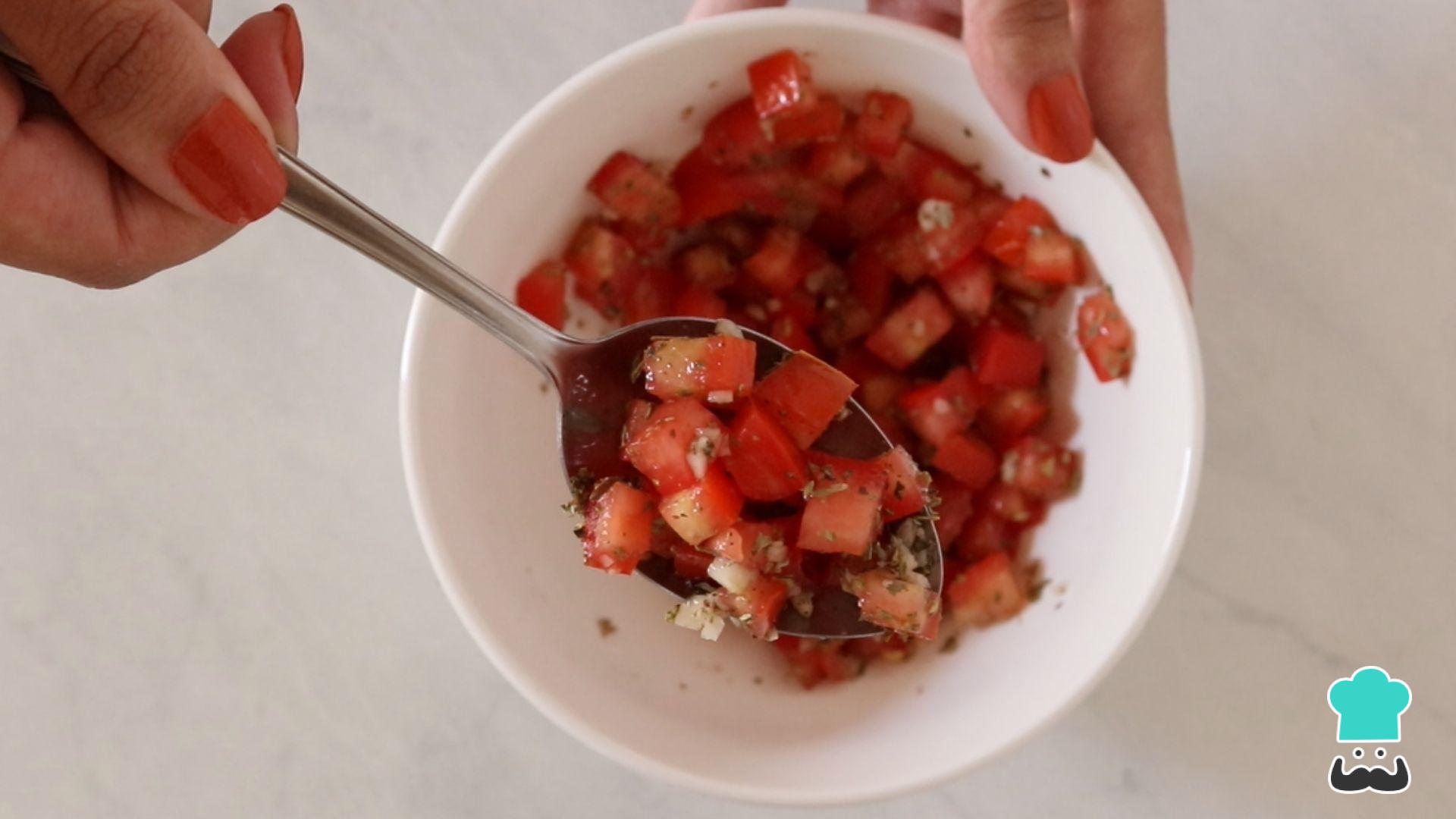 Vamos preparar agora o tomate temperado. Ele é opcional mas vai deixar o seu pão de mortadela ainda mais gostoso!