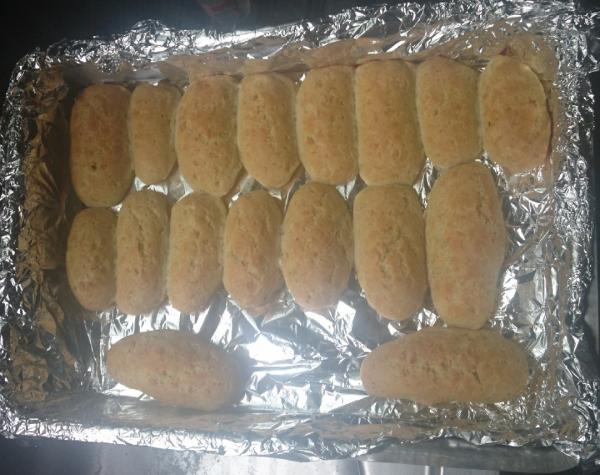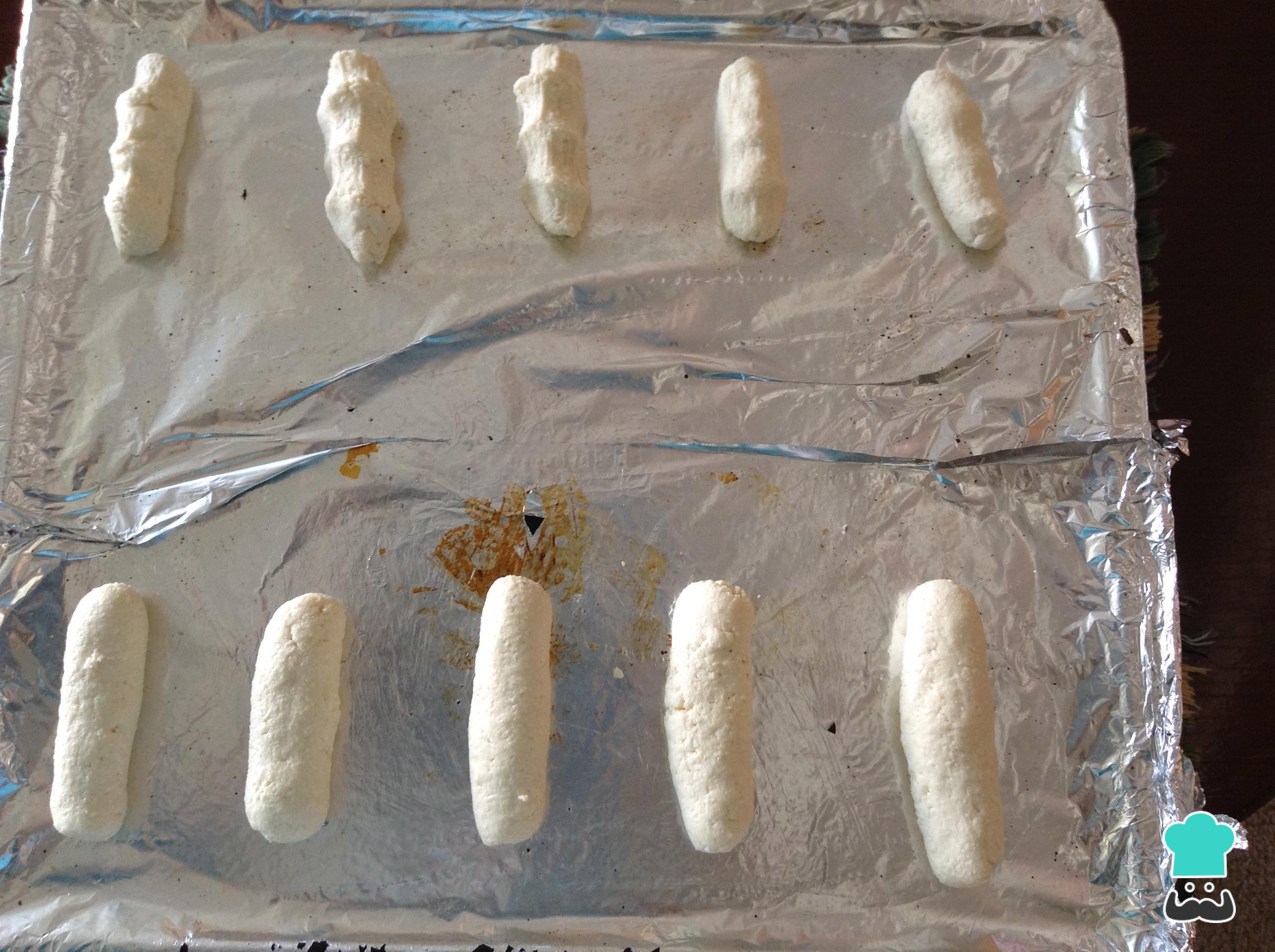 Modele a massa como preferir e coloque em uma assadeira. Não coloque a massa muito próxima, pois estes pães de queijo colombianos irão crescer bastante.