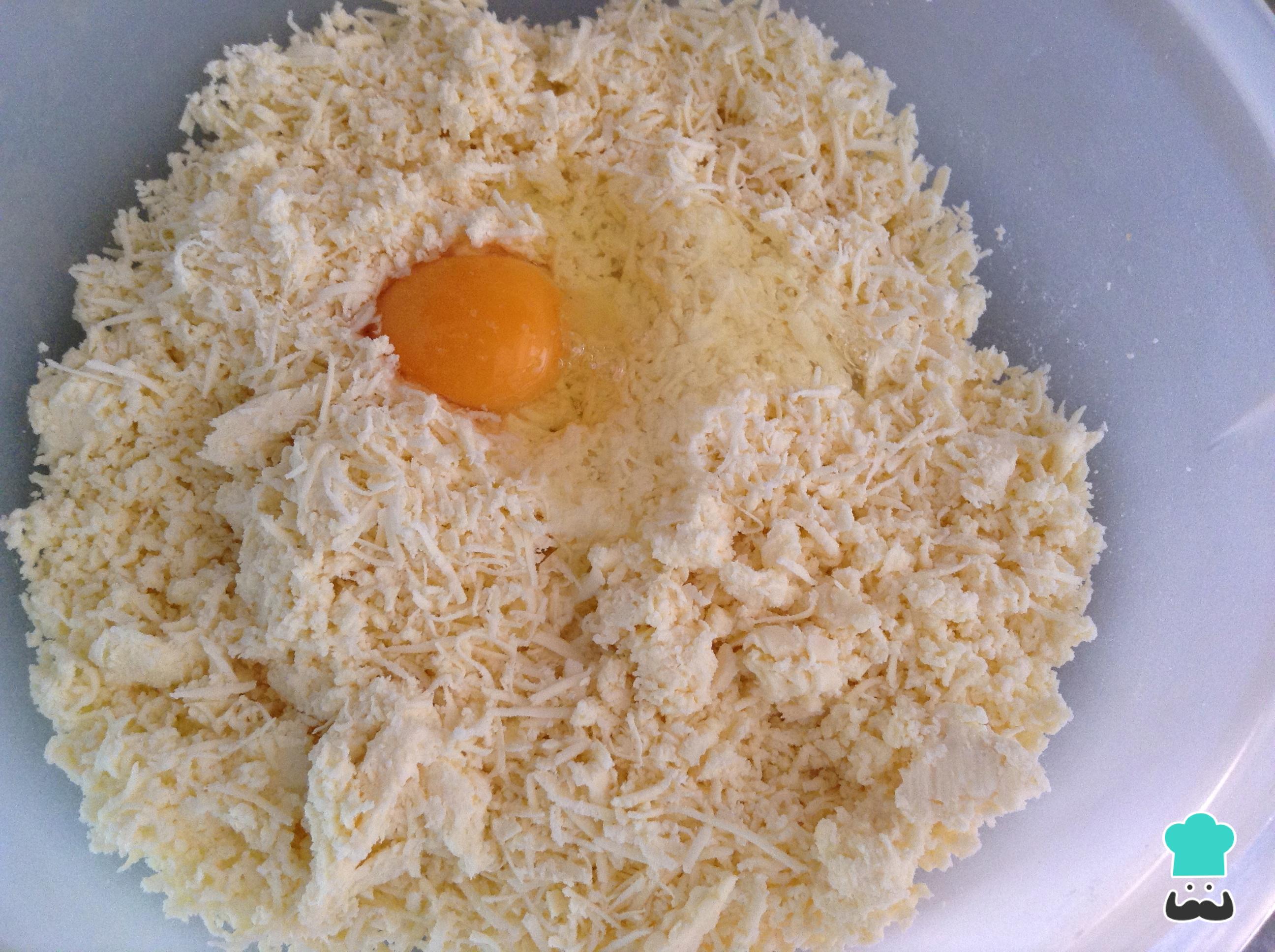 Adicione o ovo, misture com uma colher ou amasse com as mãos.