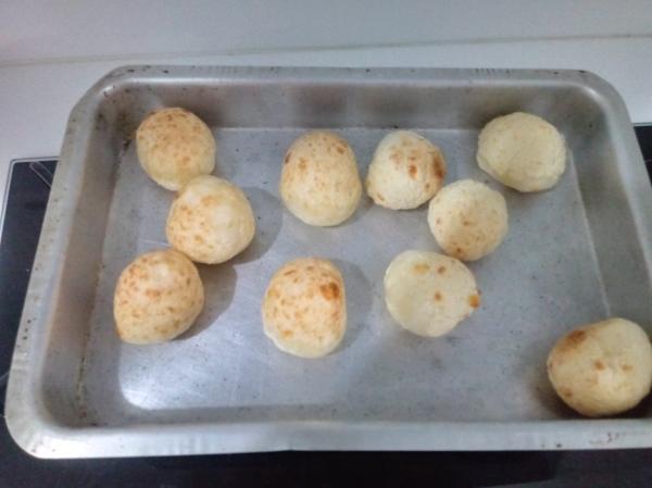 Dica: Deixe espaço entre as bolinhas de pão de queijo para poderem crescer sem não grudar. Fique sempre de olho para não queimar, pois a temperatura dos fornos pode variar.
