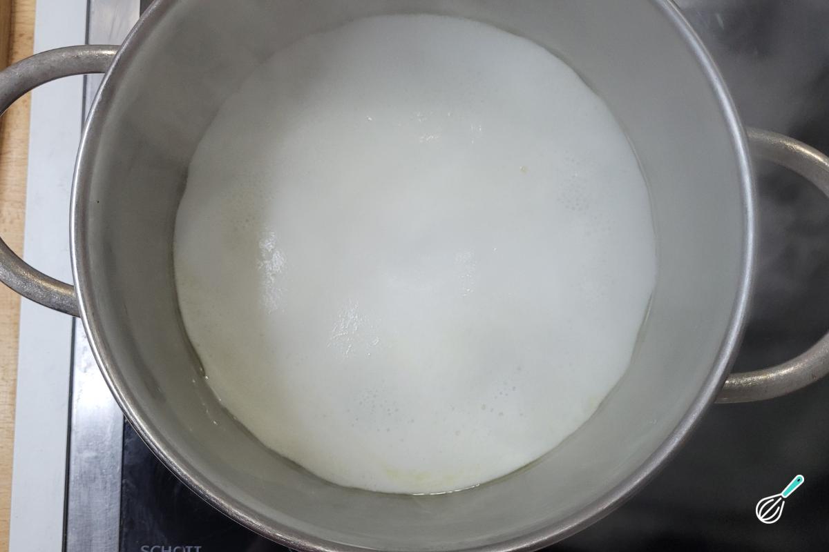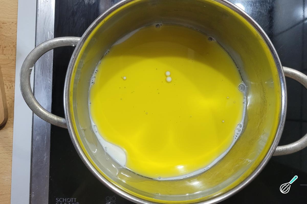 Assim que a mistura de leite e óleo ferver, desligue o fogo.
