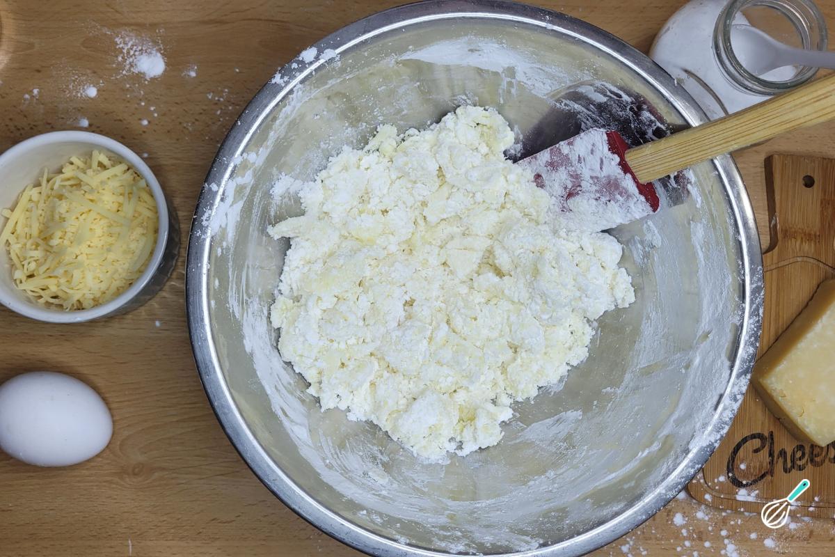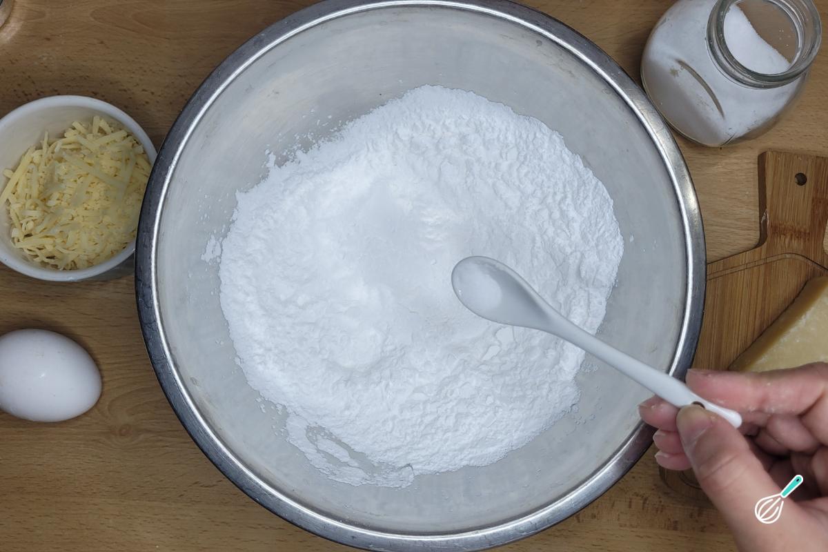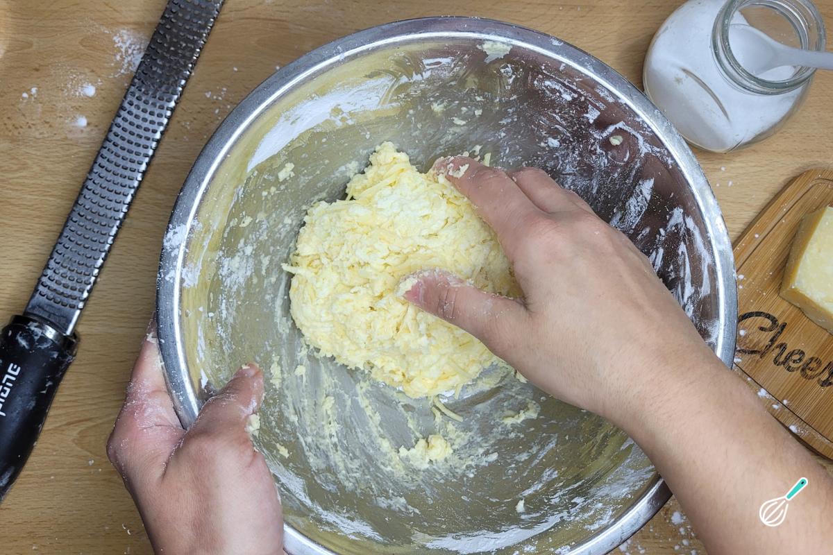 Misture bem até que a massa esteja homogênea. A massa não pode ficar seca, mas também não pode estar muito mole - caso contrário, os pães de queijo ficam sem estrutura e acabam espalhando no forno.
