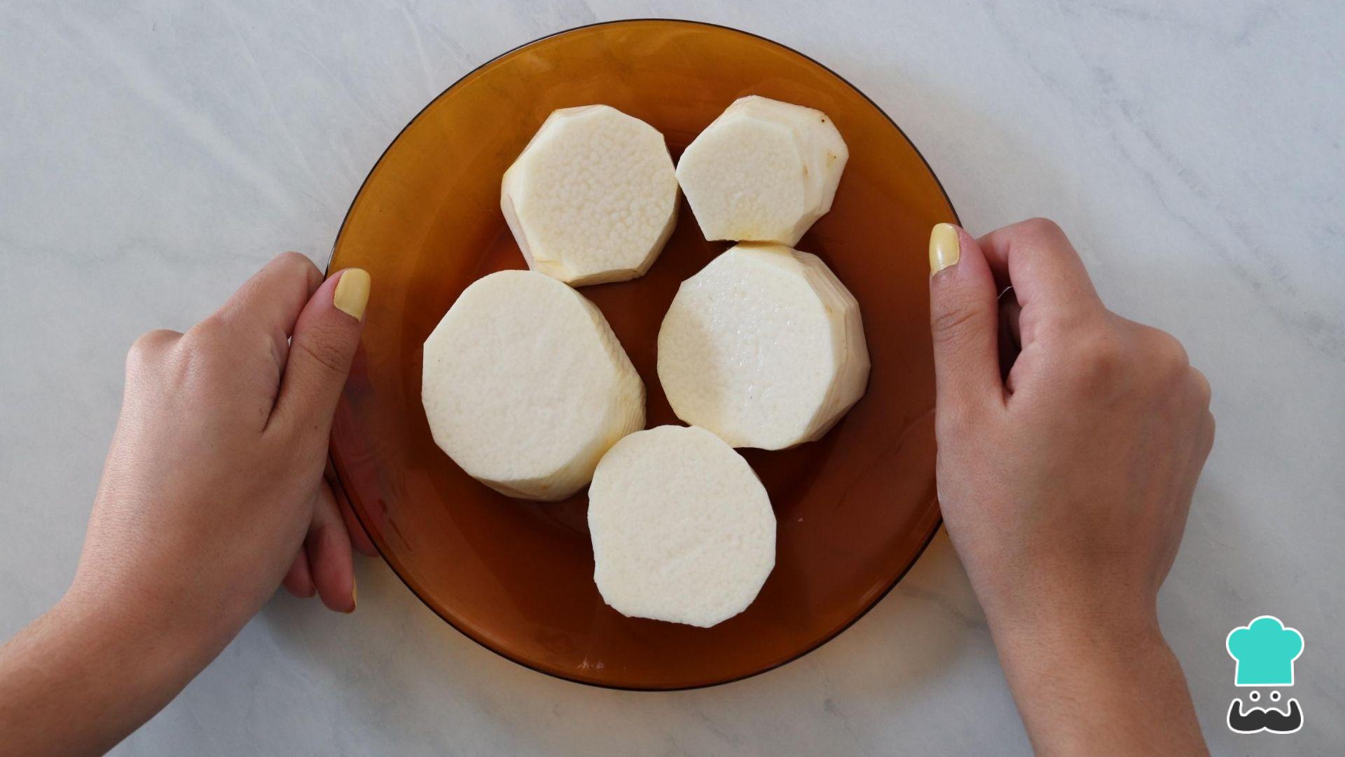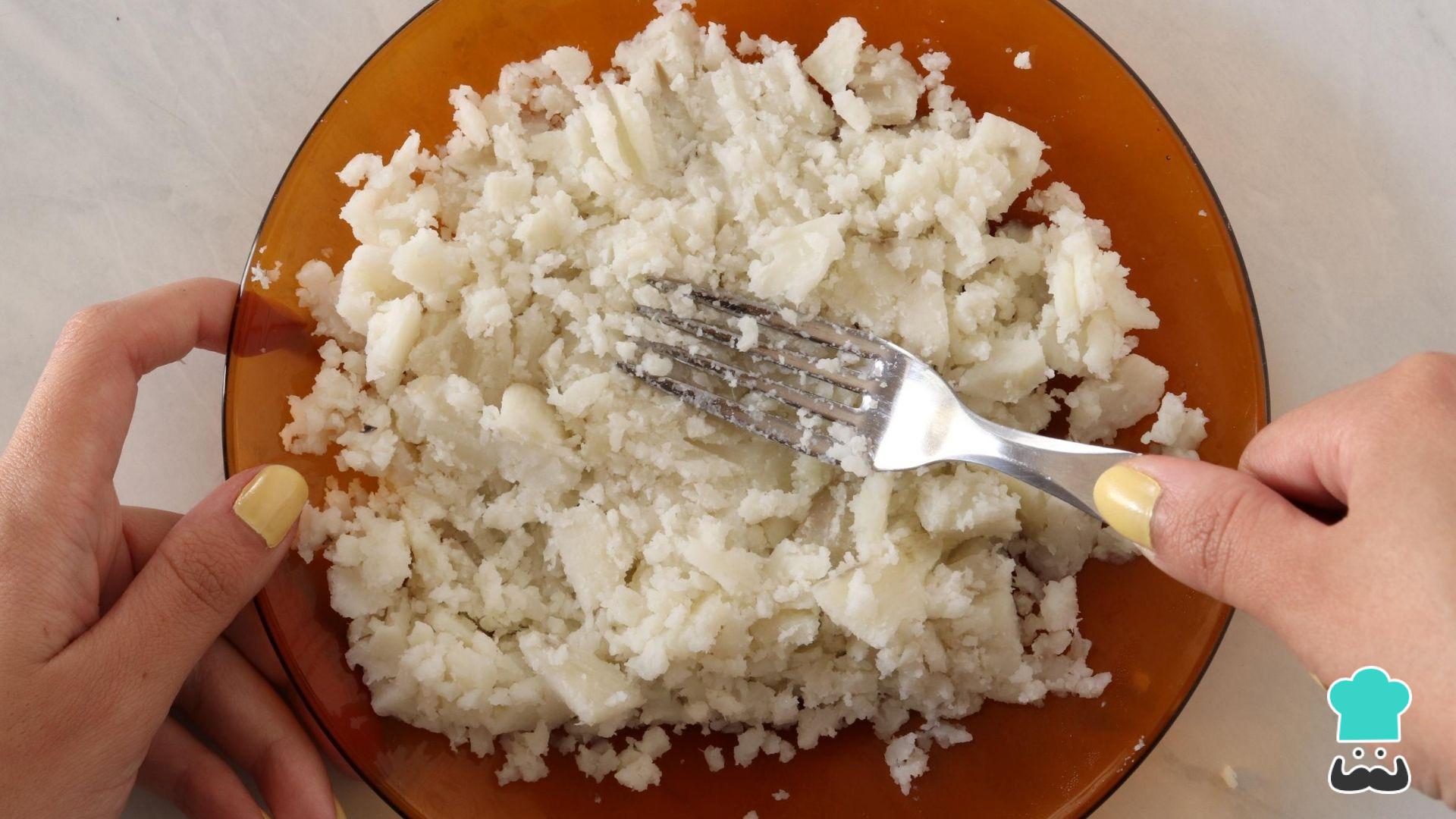 Em seguida, com o inhame ainda quente, amasse com ajuda de um garfo ou passe por um espremedor.