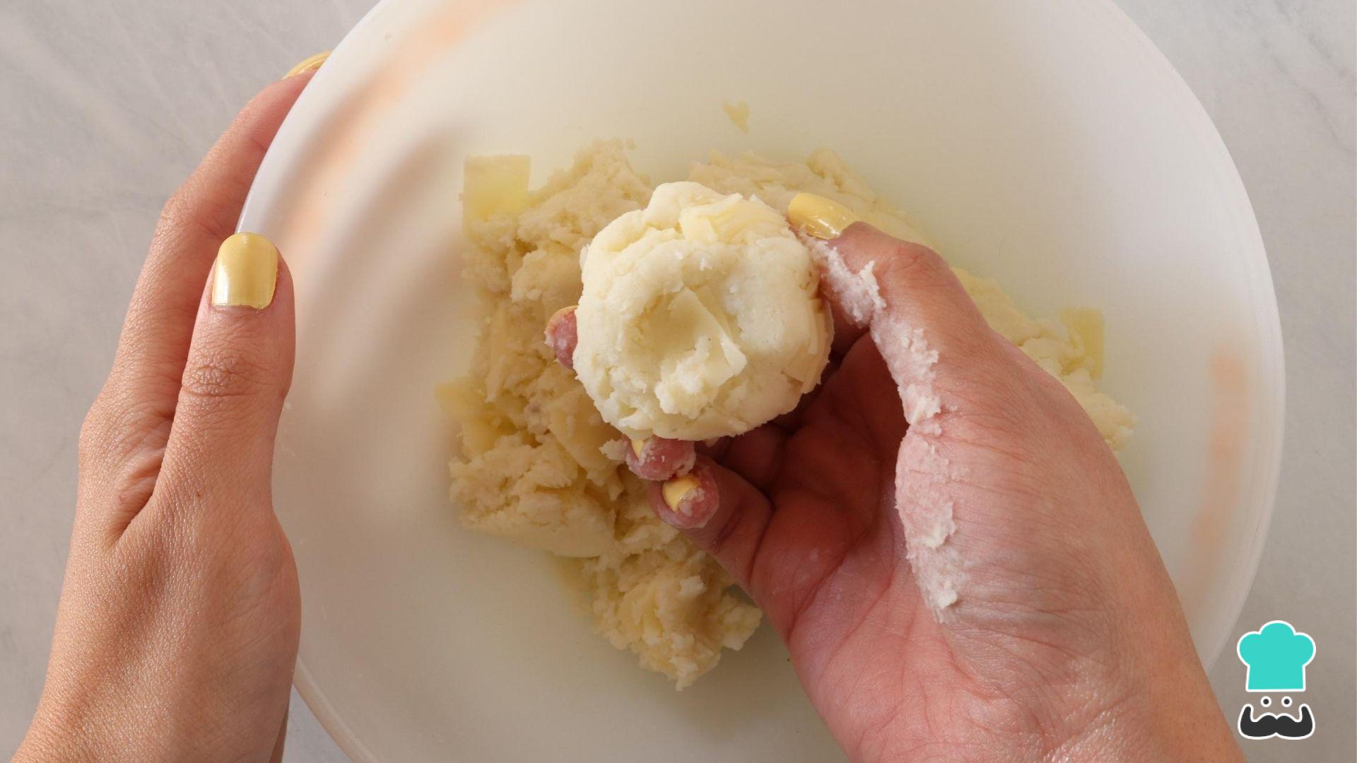 Em seguida misture todos os demais ingredientes e comece a amassar com as mãos. Acrescente o polvilho aos poucos - talvez você use um pouco menos que 1/2 xícara.