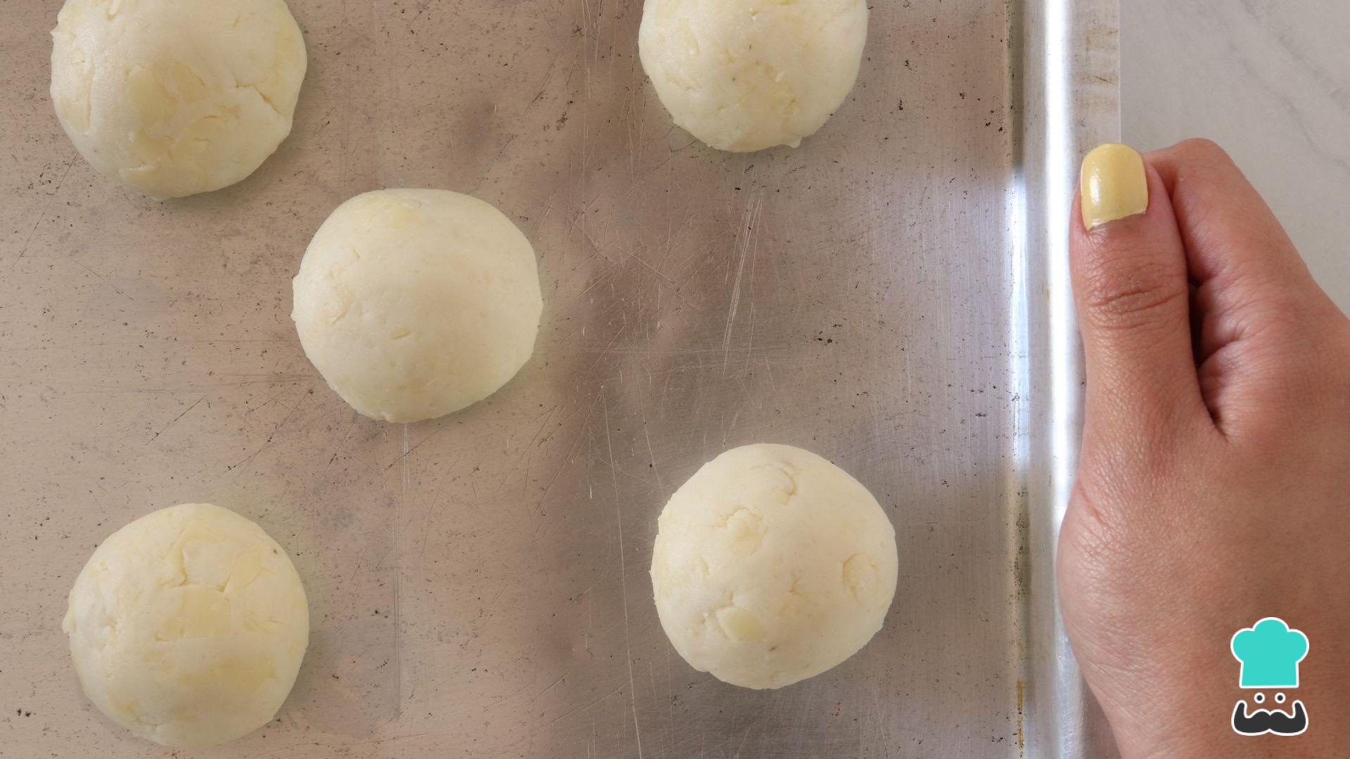 Dica: É importante deixar um espaço entre as bolinhas porque elas inflam no forno.