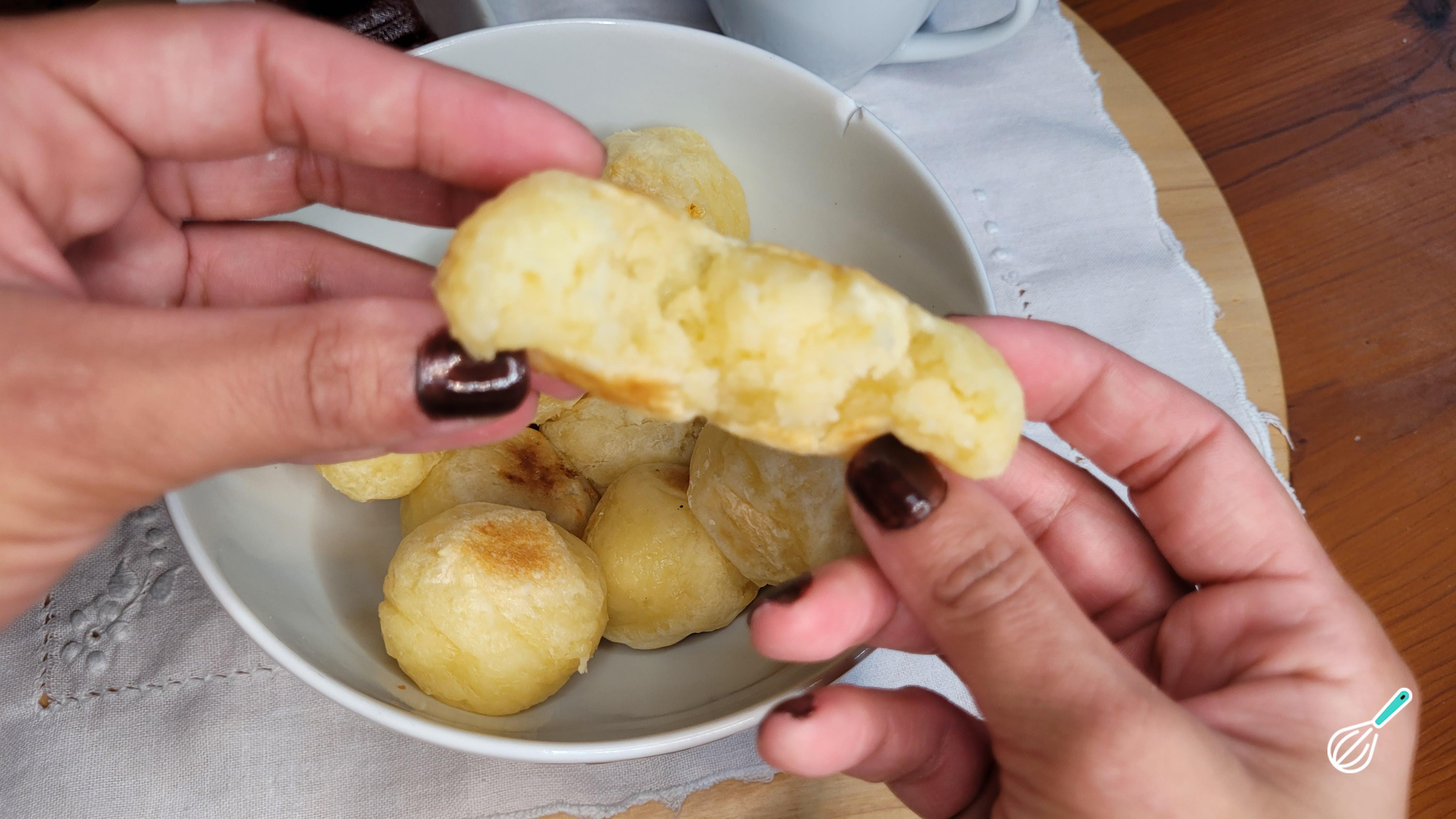 Seu pão de queijo de frigideira com polvilho está pronto, bom apetite! Nos diga o que achou dessa receita nos comentários!