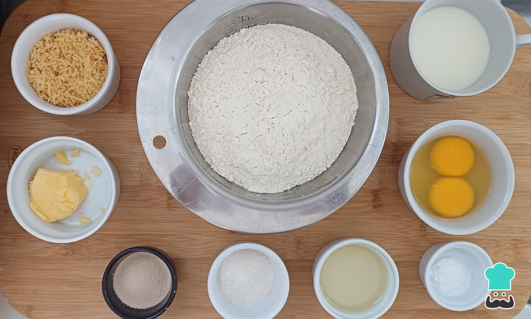 Separe os ingredientes necessários para preparar a receita de pão delícia fácil.