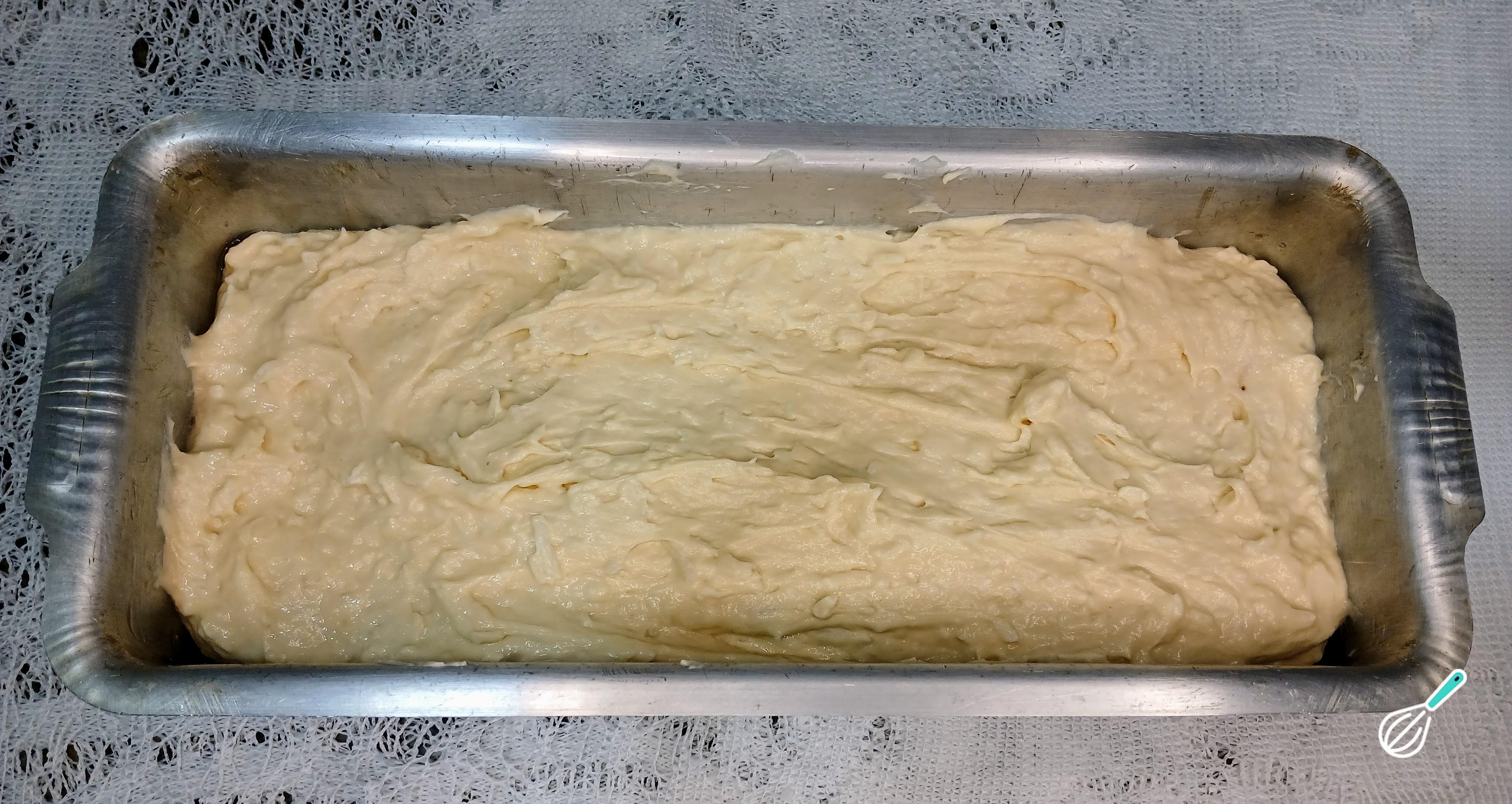 Feito isso, depois do descanso do fermento coloque os ovos, o leite vegetal, o azeite e adicione o fermento . Ligue a batedeira e bata em velocidade baixa, somente para misturar os ingredientes.