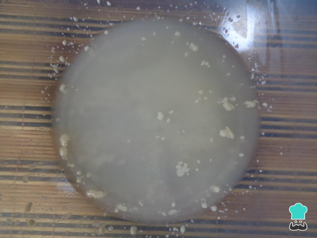 Seguidamente dissolva o açúcar e a levedura na água morna.