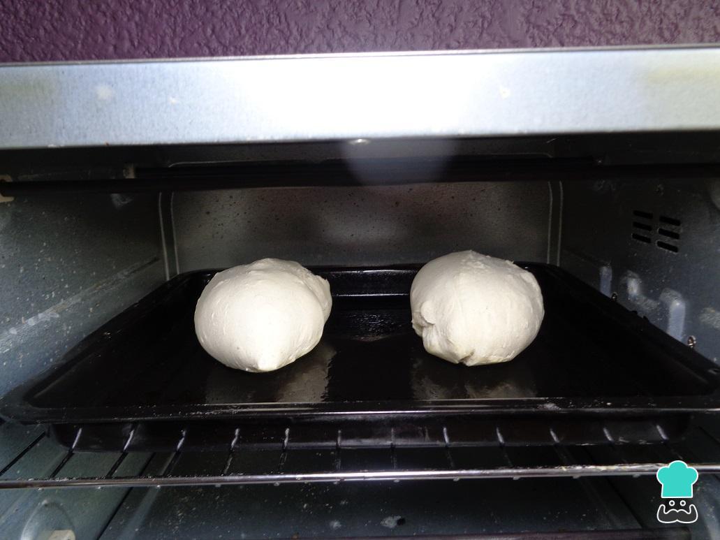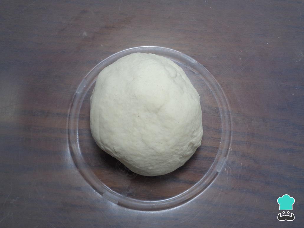Comece misturando os ingredientes e amasse por 10 minutos, até obter uma massa homogênea e com consistência elástica. Modele em forma de bola, coloque em uma vasilha coberta com um pano de prato ou plástico filme e deixe crescer por 1 hora.