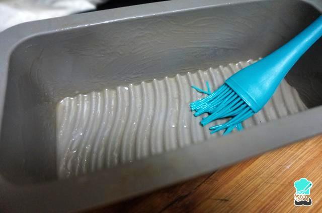 Para começar a receita de pão low carb com farinha de coco, você deve primeiro aquecer o forno a 170°C com aquecimento em cima e embaixo. Em seguida, espalhe um pouco de óleo de coco na forma para que a massa não grude. Nesse caso, é uma forma de 18 cm de comprimento por 9 cm de largura.