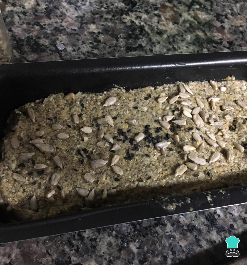 Coloque a mistura do bolo low carb em uma forma antiaderente, salpique a semente de girassol, o gergelim preto e leve para assar a 180ºC até dourar, o que demorará entre 20 a 30 minutos (preste atenção para não deixar queimar e faça o teste do palito).