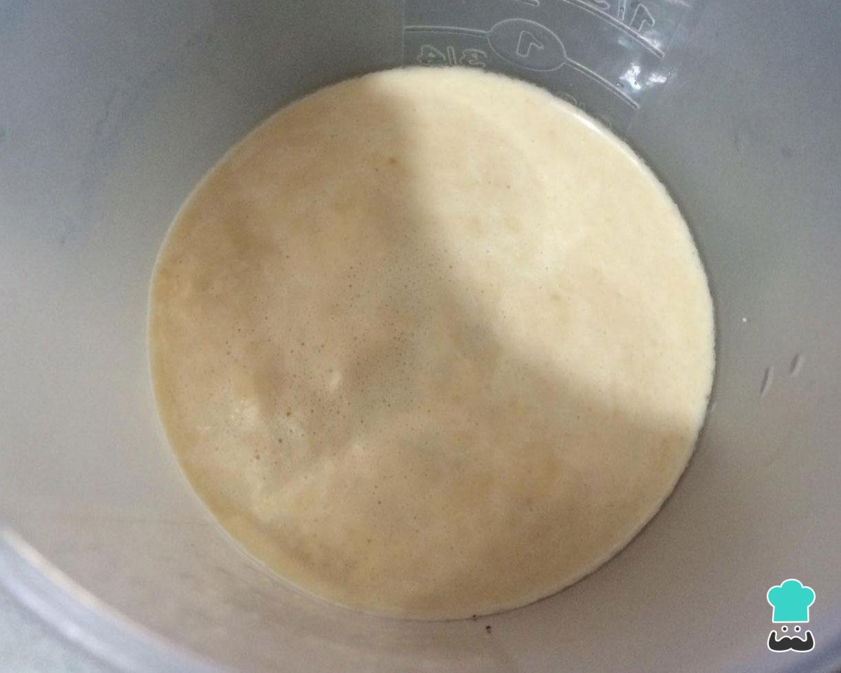 Dissolva o fermento no leite e deixe por 5-10 minutos ou até o fermento começar a espumar, como na foto - isso significa que está ativo e pode ser usado.
