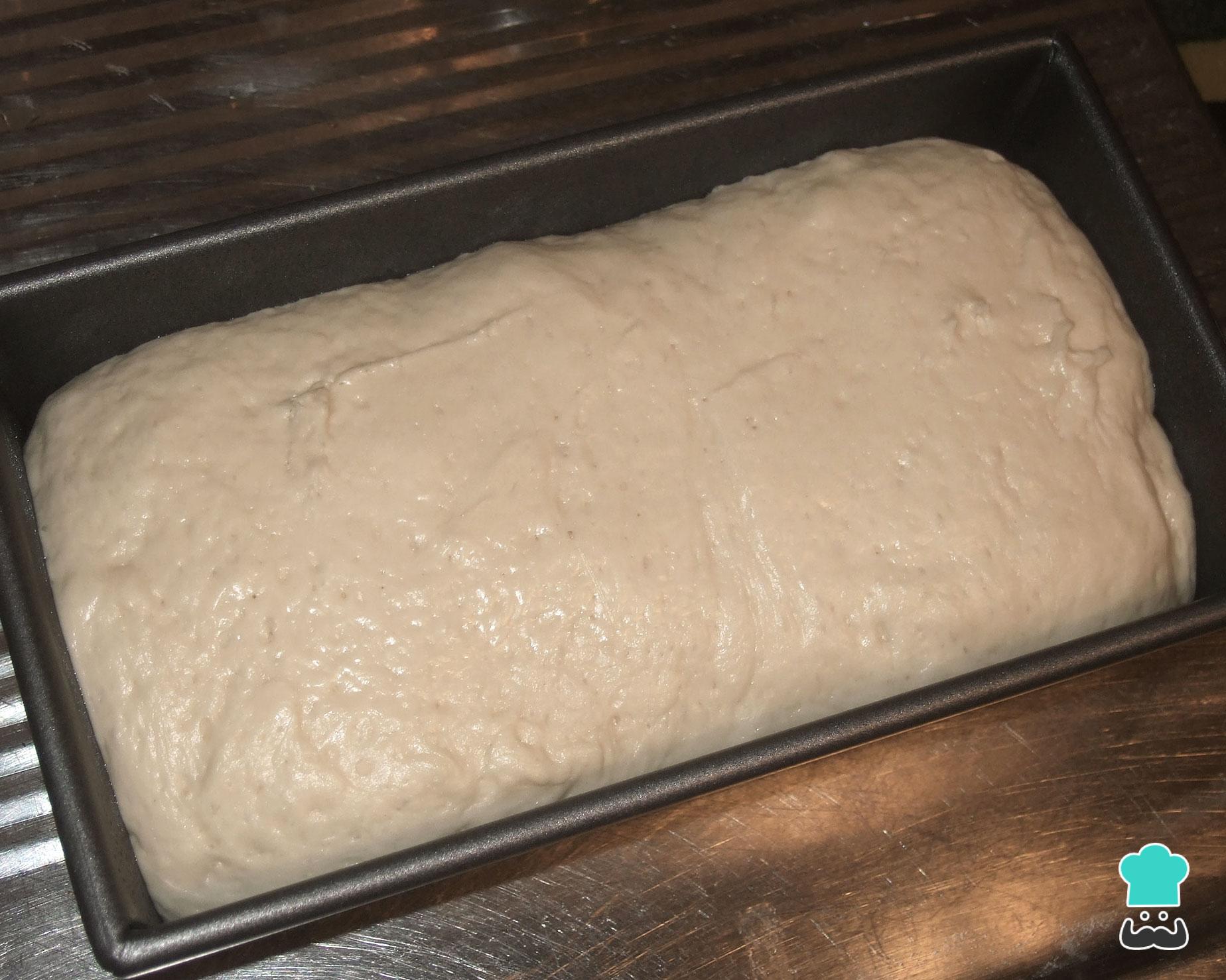 Transfira a massa do pão de batedeira para uma forma de pão untada e reserve até dobrar de volume (entre 30 minutos a 1 hora).