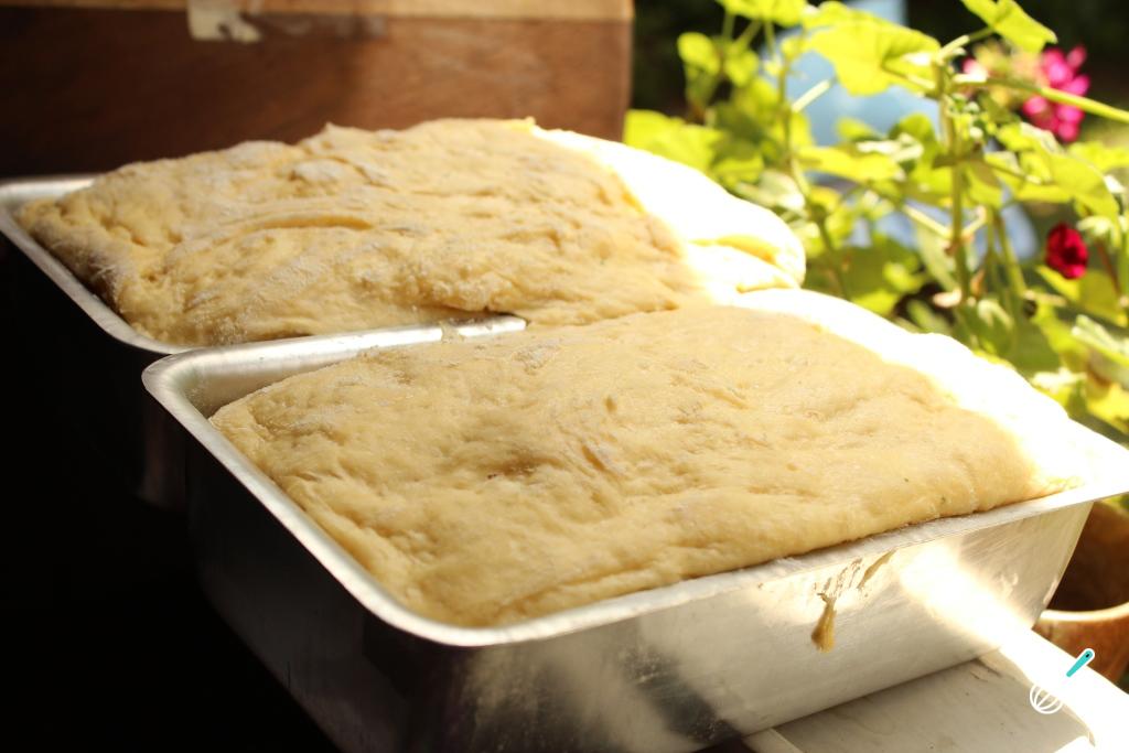 De seguida transfira a massa para uma forma inglesa untada com azeite e polvilhada com uma das farinhas indicadas na lista dos ingredientes.