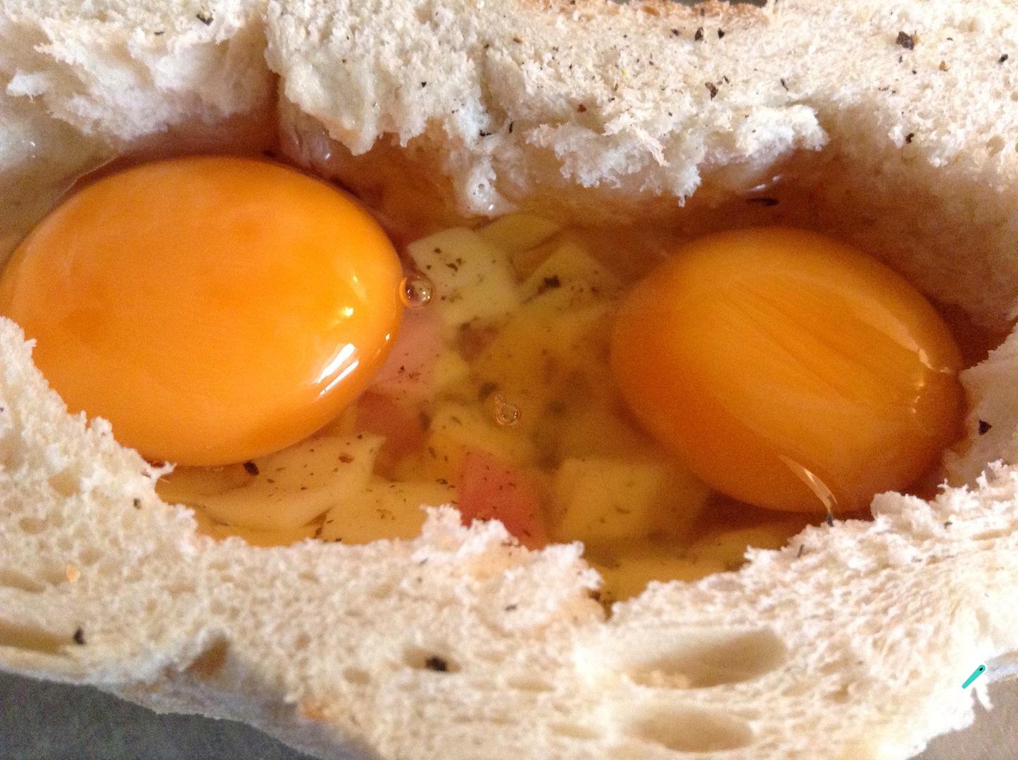 Dica: O tempo de assadura depende de como você gostar dos ovos, eu aconselho que consuma o pão com as gemas ainda líquidas.