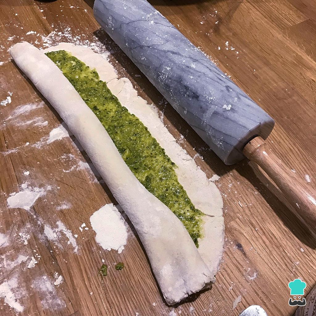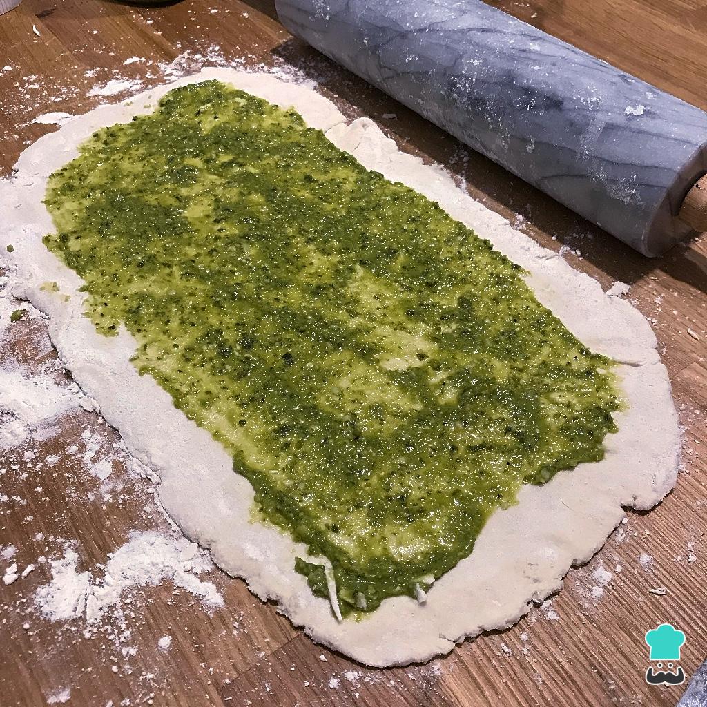 Dica: Se você preferir pode substituir o pesto por outro ingrediente: ricota e espinafre, geleia, queijo e fiambre...