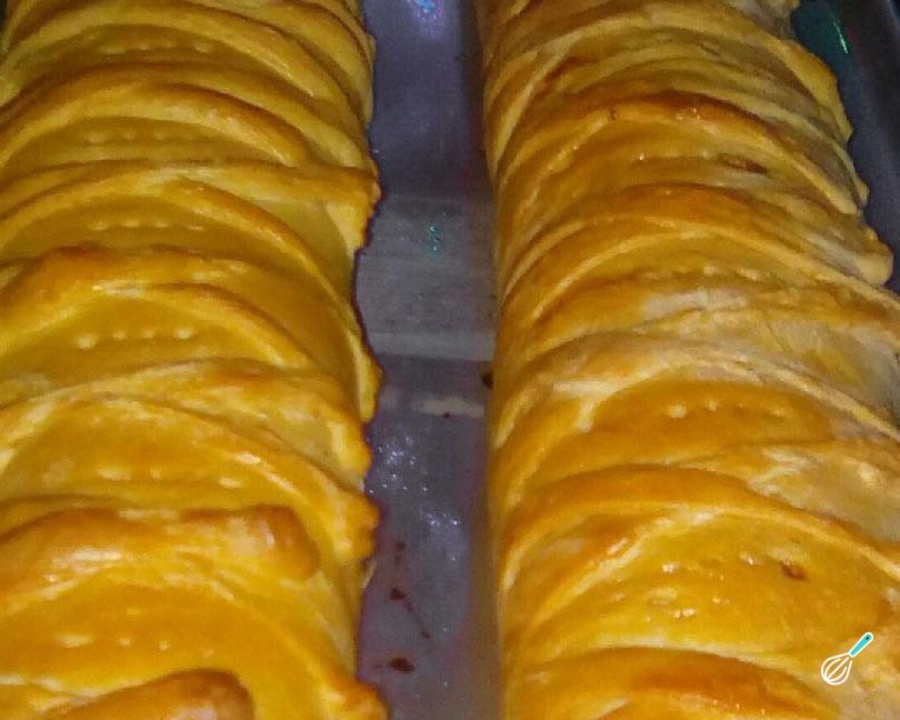 Enrole as massas recheadas em dois rocamboles, enrolando pouco a pouco com as duas mãos, enquanto pressiona para deixar a massa bem compacta.