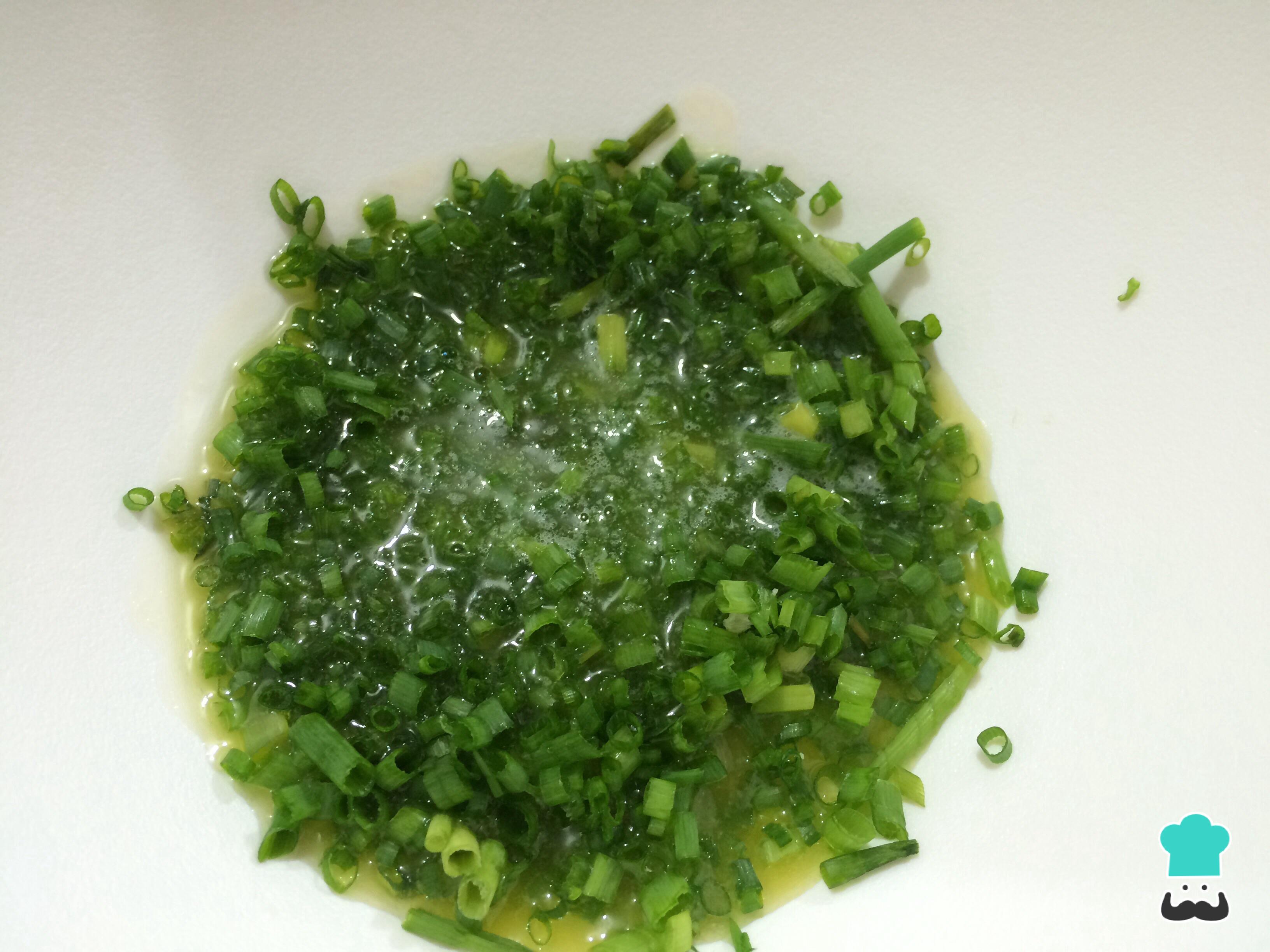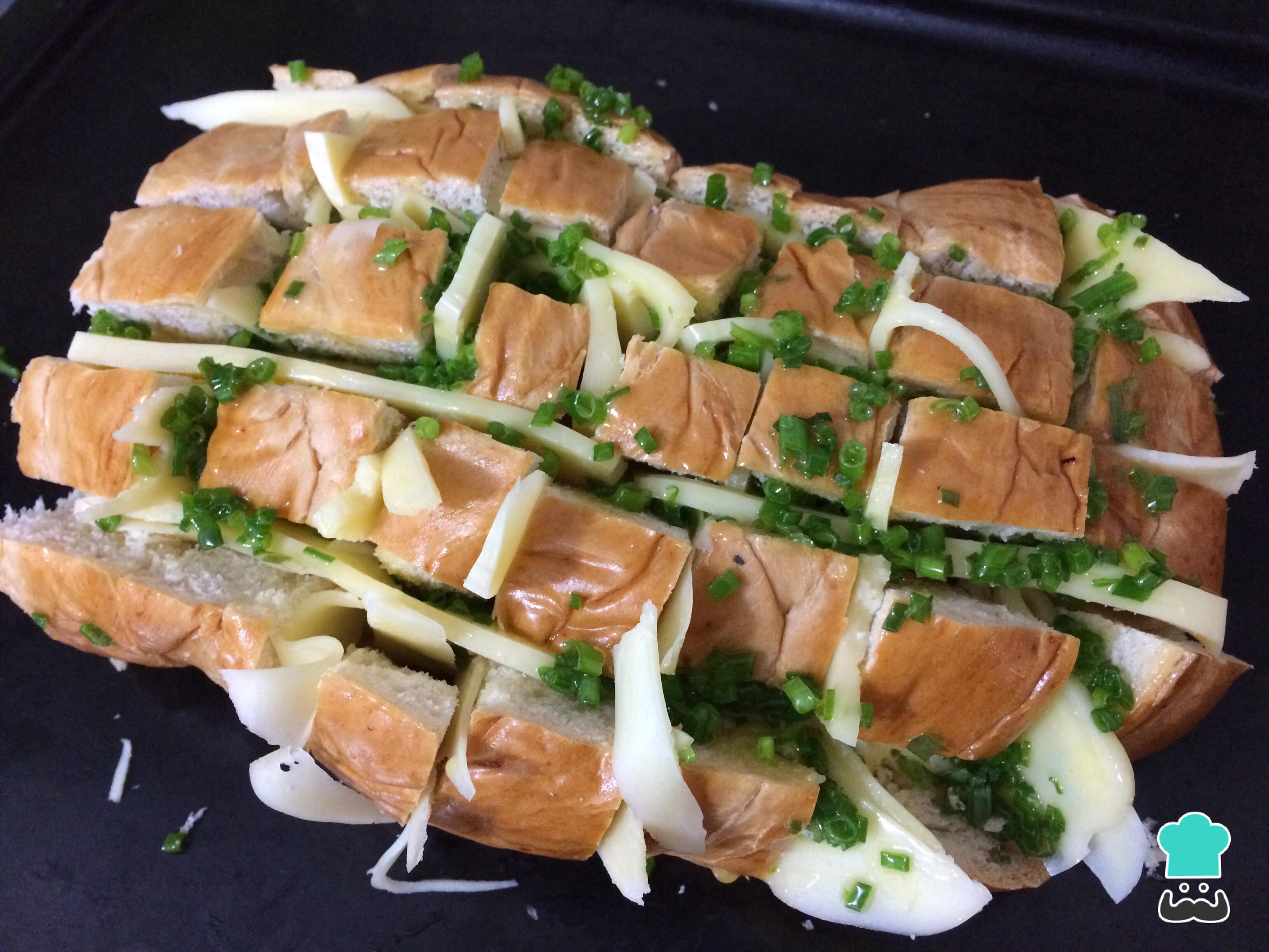 Recheio o pão com fatias de queijo e pincele a cebolinha entre todos os cortes feitos anteriormente. Uma vez pronto, coloque-o em uma bandeja e leve ao forno a 180 ° C por 15 minutos.