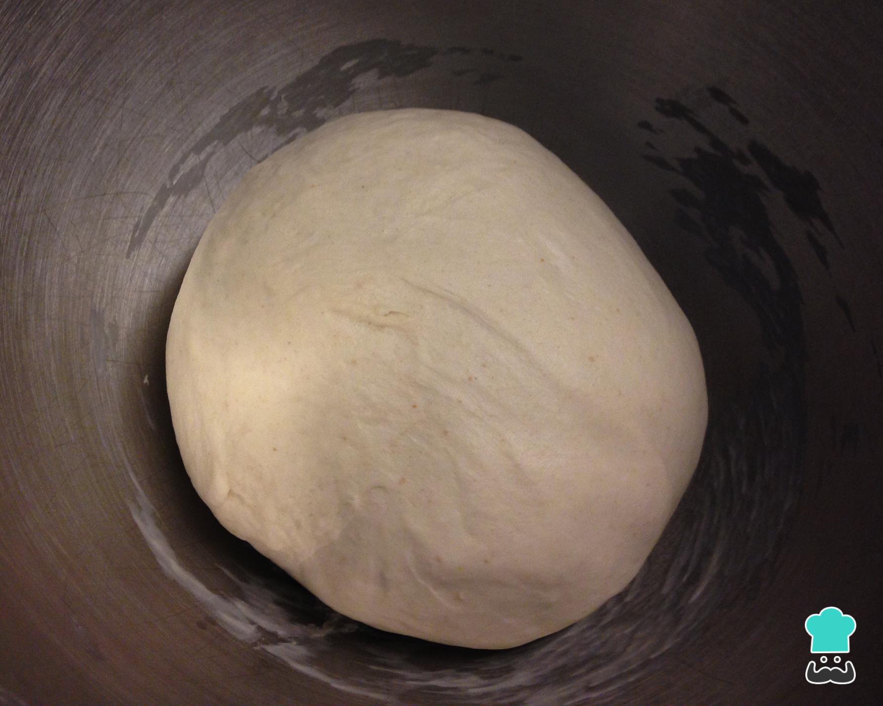 Molde a massa em forma de bola e coloque numa tigela levemente untada. Cubra com filme plástico ou com um pano de cozinha limpo e reserve em um local quente ou morno por 1 hora ou até que a massa dobre de tamanho.