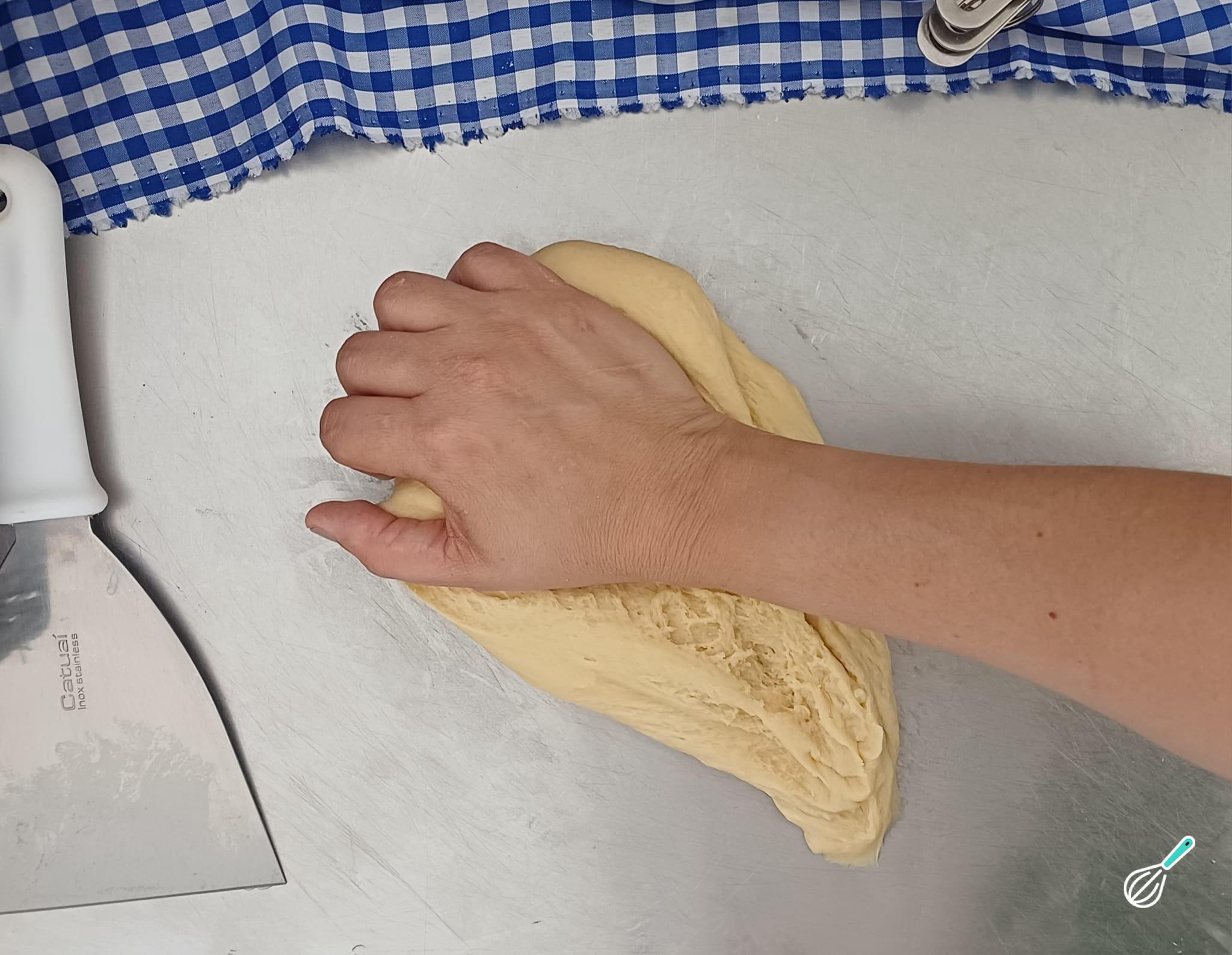A massa precisa ficar lisa, elástica e macia, porém poderá ainda grudar levemente nas mãos.
