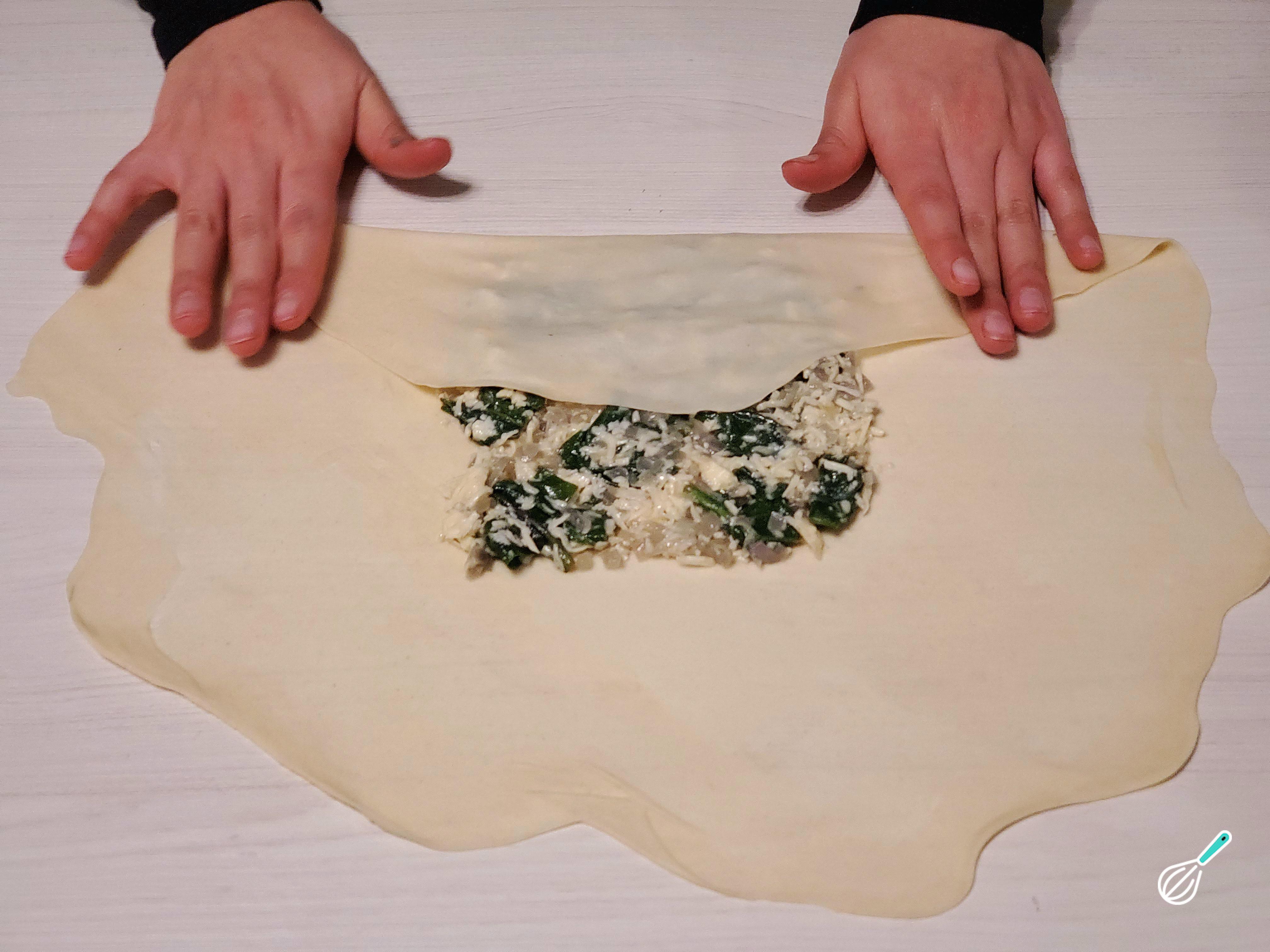 Dobre os dois lados opostos da massa em direção ao centro cobrindo o recheio.