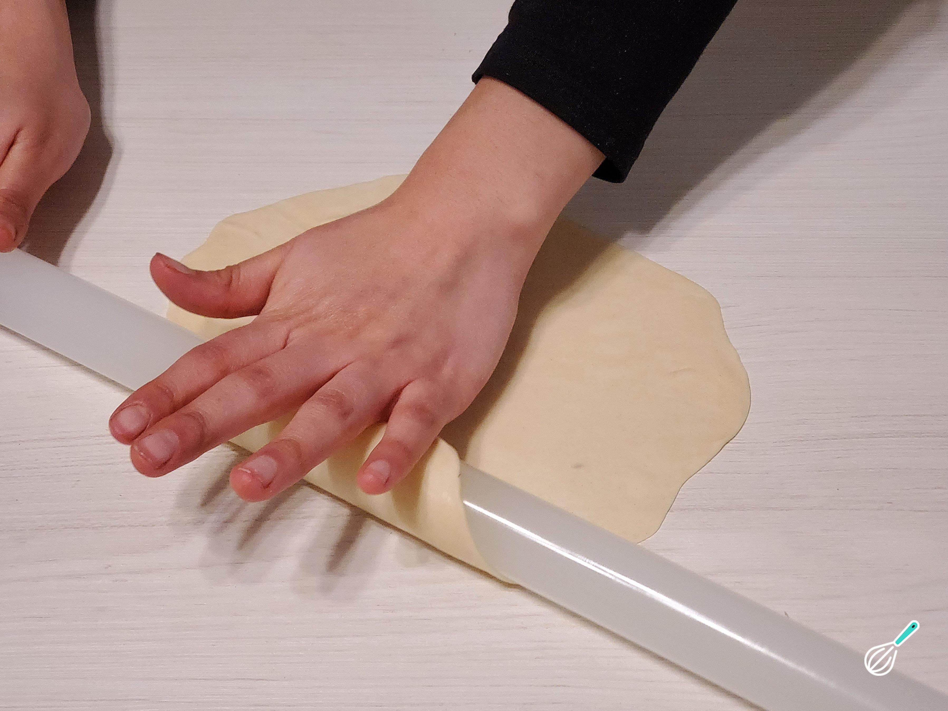 Dica: você notará que a massa é tão fina que fica transparente na mesa de trabalho.