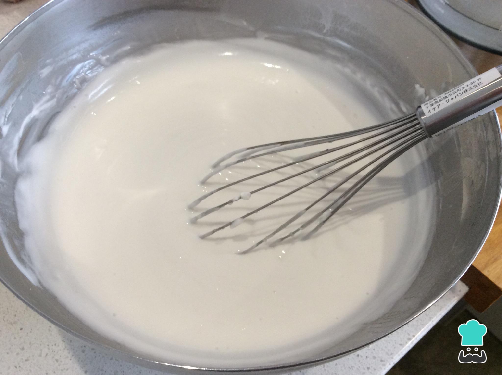 Coloque a farinha de arroz numa tigela e, pouco a pouco, acrescente a água, mexendo até obter uma pasta lisa e meio líquida.