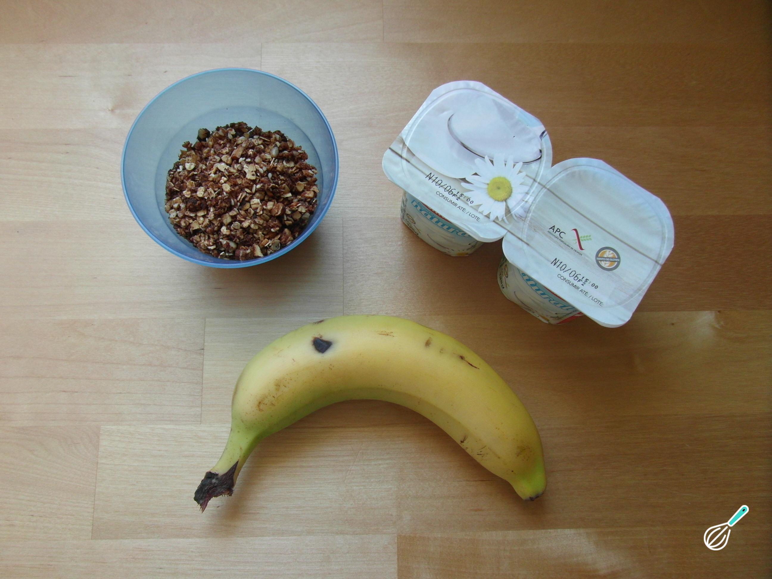 O primeiro passo do parfait de iogurte com frutas e granola é preparar os ingredientes - confira a receita de granola caseira e a receita de iogurte natural caseiro.
