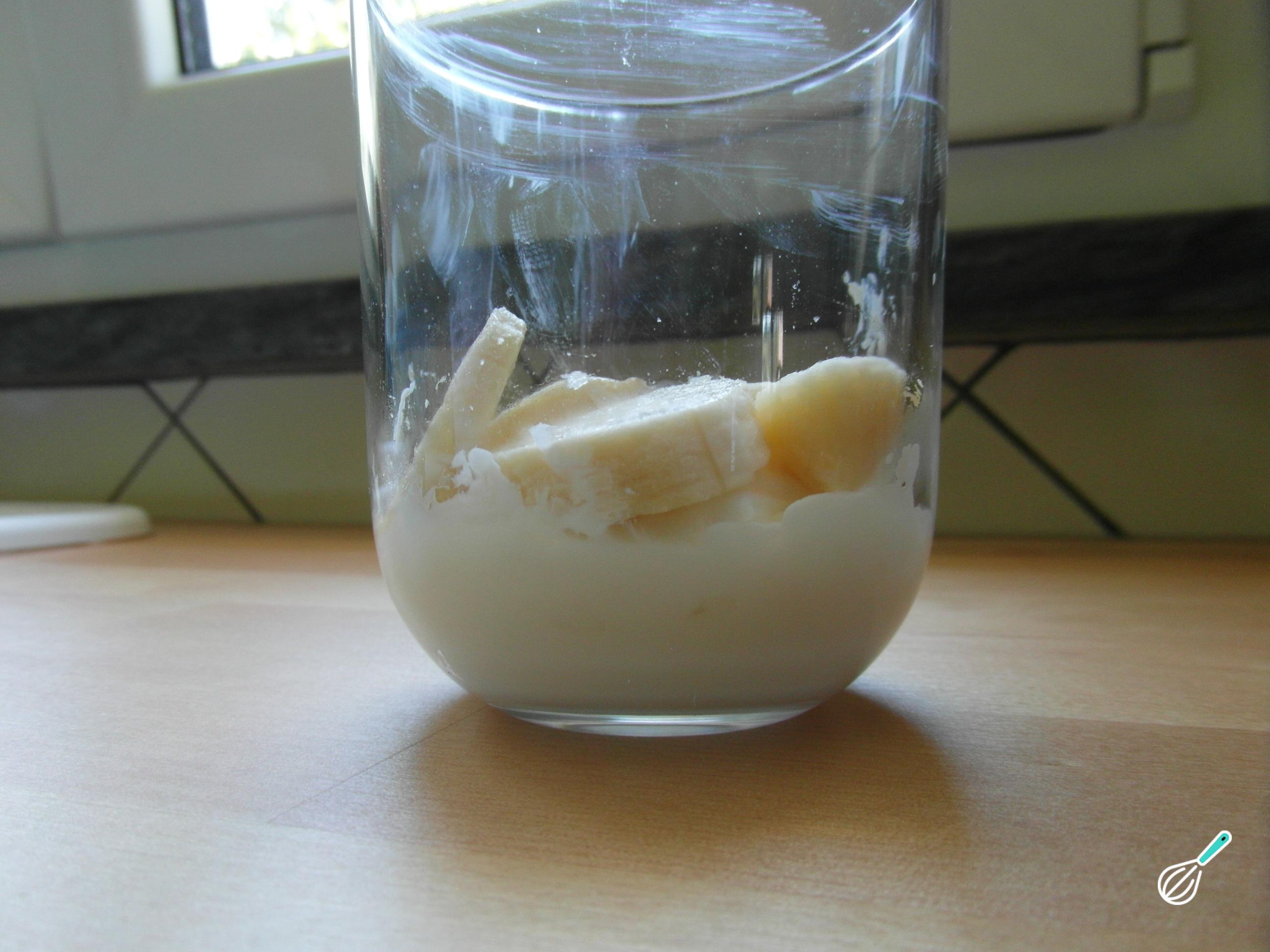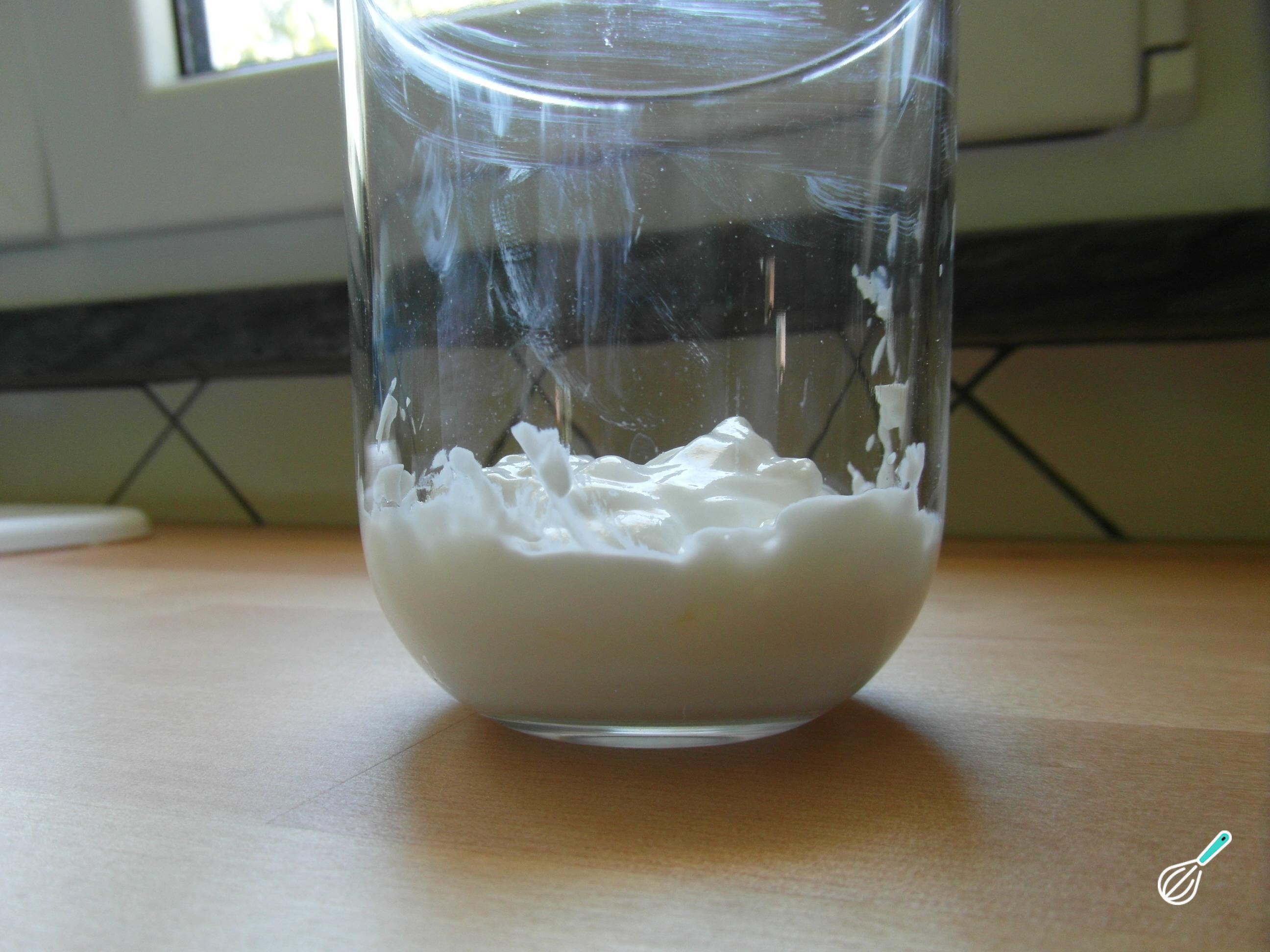No fundo de copo de vidro coloque uma camada de iogurte.