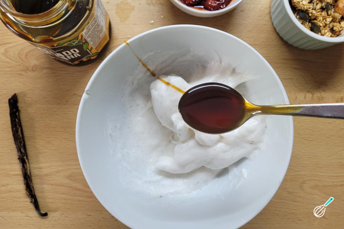 Se quiser uma versão mais leve, pode substituir o chantilly por iogurte natural, de preferência um mais cremoso. Pode ser um iogurte grego ou você pode drenar o soro do iogurte natural para deixá-lo mais cremoso. O melado de cana pode ser substituído por mel, néctar de coco ou o que preferir.