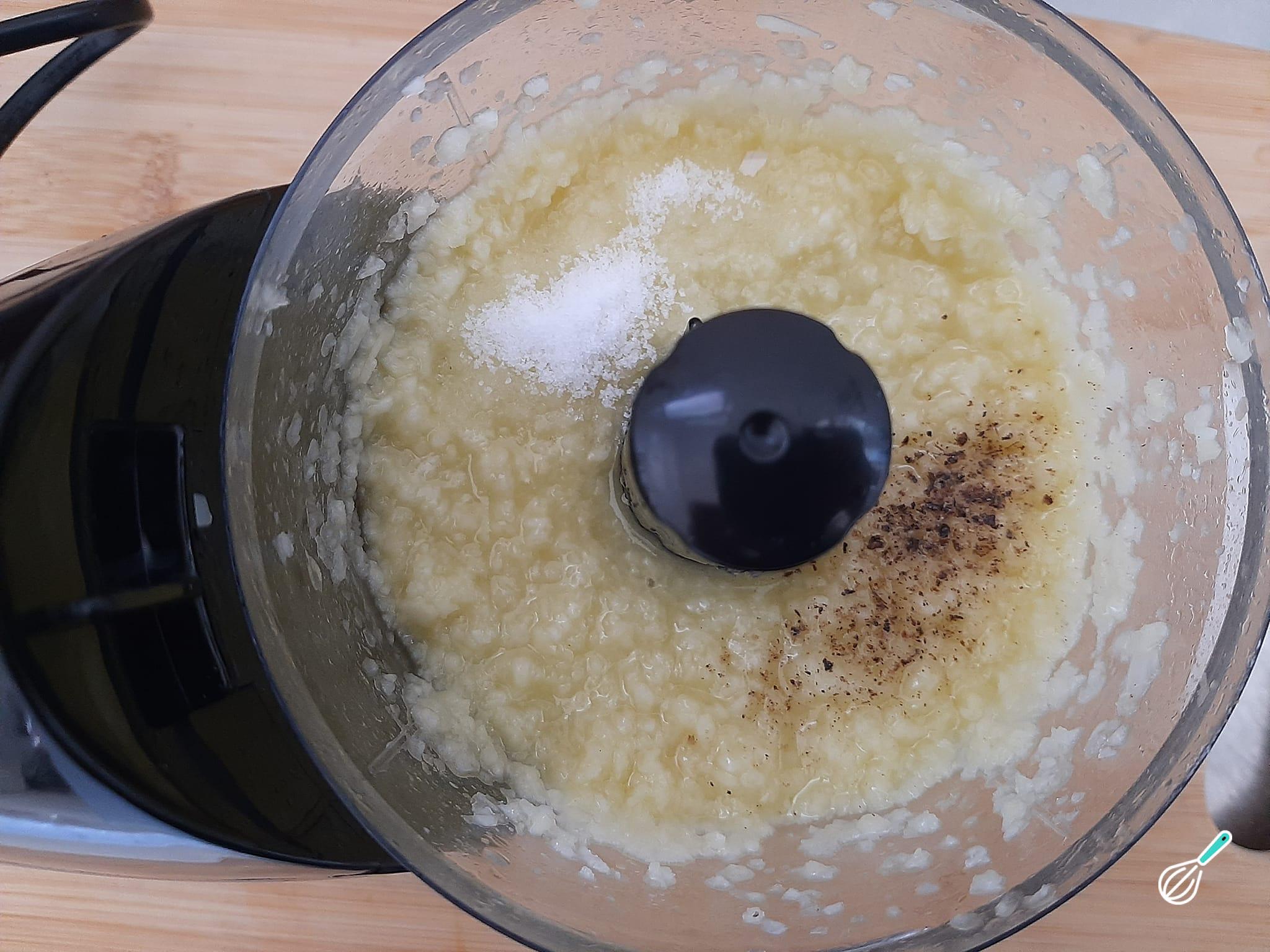 Acrescente sal e pimenta do reino (se desejar que a pasta fique mais temperada) e volte a processar até que fique com textura de pasta.