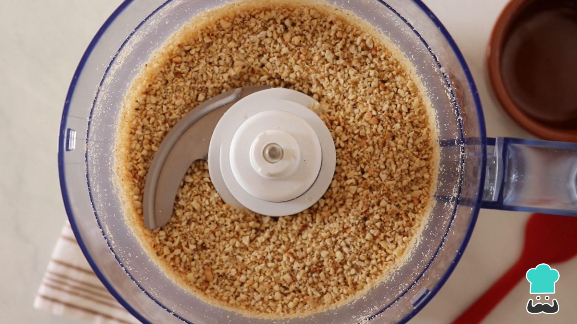 Processando mais uma vez ela vai chegar nessa textura molhada e pedaçuda. Nesse ponto é ideal que você verifique se o seu processador está com o motor quente. Se estiver, desligue e espere uns minutinhos antes de terminar de bater as castanhas para não sobrecarregar o aparelho.