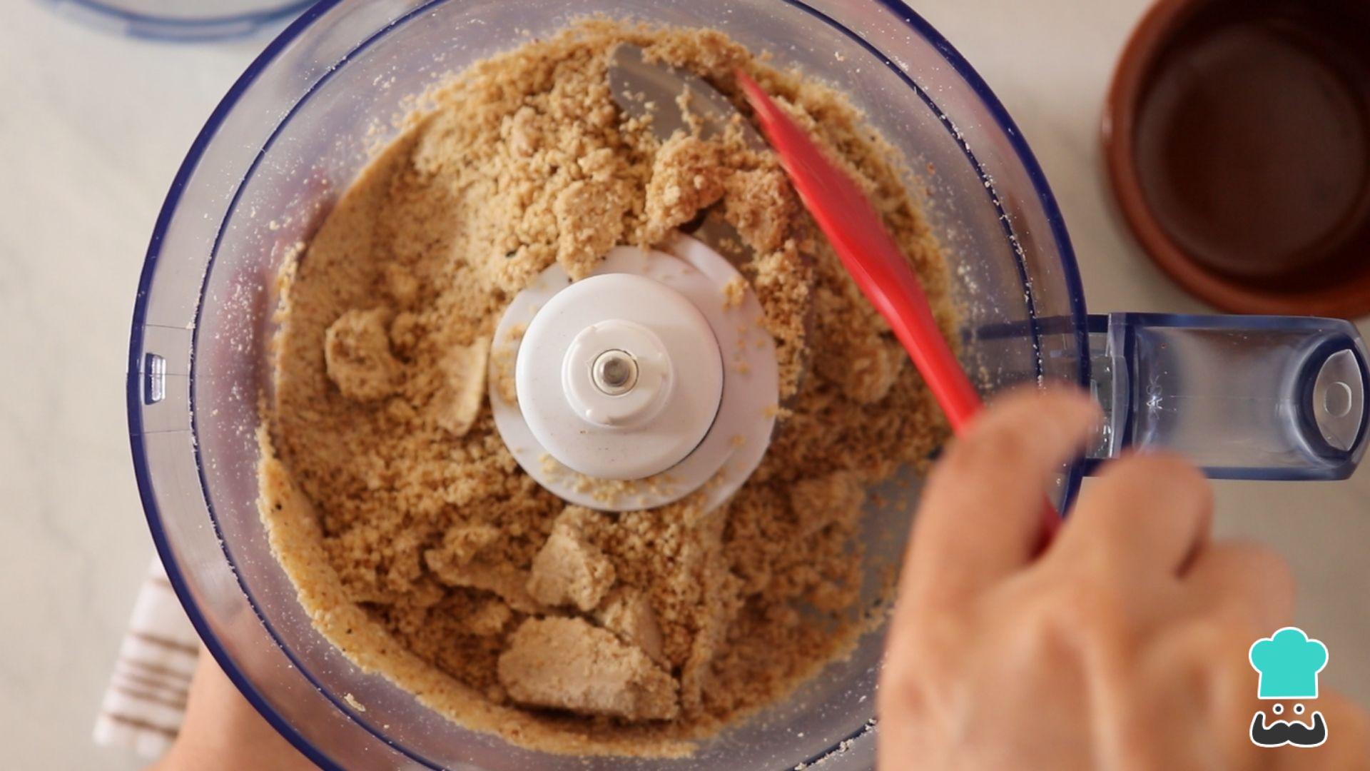 Agora é só bater mais uma vez até ela tomar forma e virar uma pasta bem cremosa! O melhor dessa pasta é que você escolhe a consistência que quer: mais lisa, mais densa, mais rústica. Bata até chegar na consistência desejada.