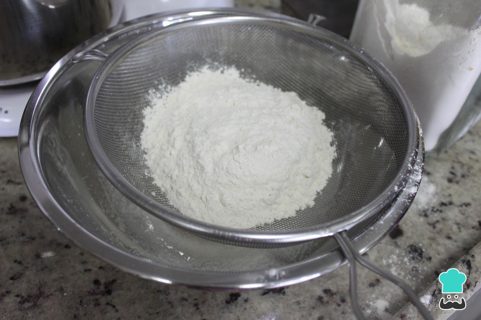 Para preparar a pasta de leite em pó, comece por peneirar o leite em pó e o açúcar de confeiteiro ou impalpável juntos.