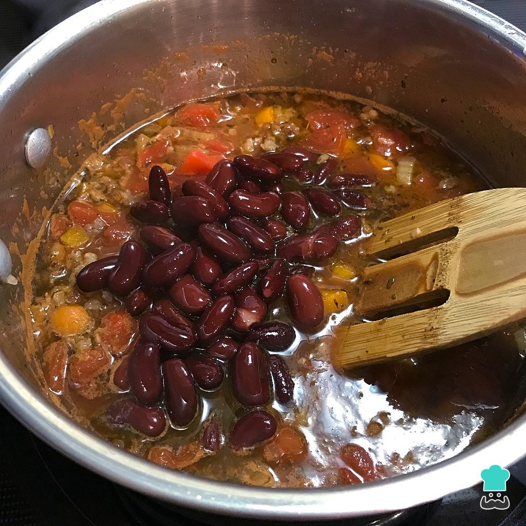 Adicione os feijões já cozidos e cozinhe por mais 1 minuto.