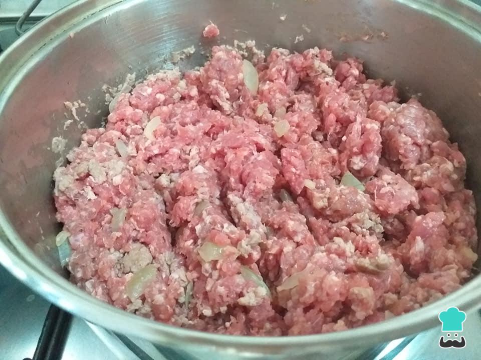 Adicione a carne moída e deixe refogando por alguns minutos, até que o caldo que se formar do cozimento seque.