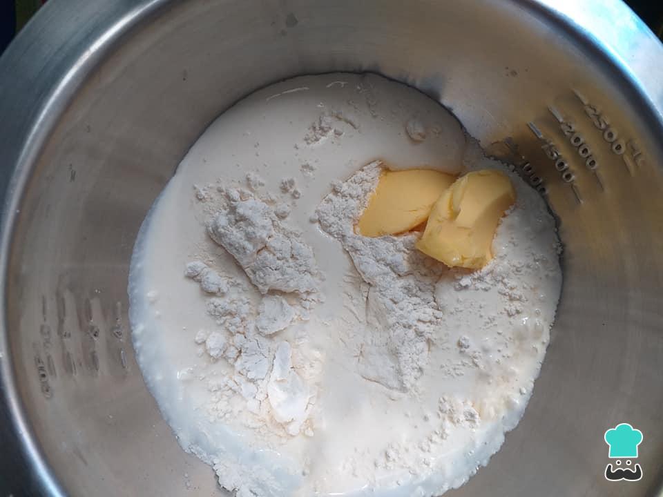 Dica: Caso a massa ainda esteja grudando muito nas mãos, adicione mais um pouco de farinha de trigo.