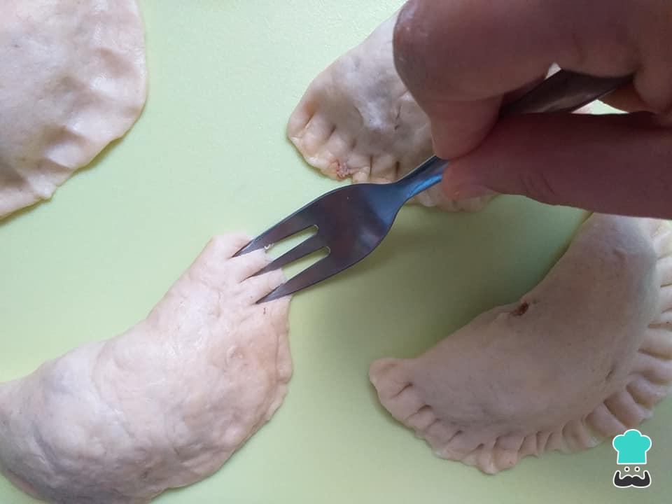 Feche os pastéis com a ajuda de um garfo, pressionando suas bordas.